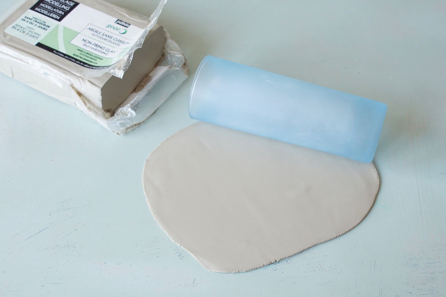 - Malaxe une boule d’argile et étale-la en plaque très fine.
