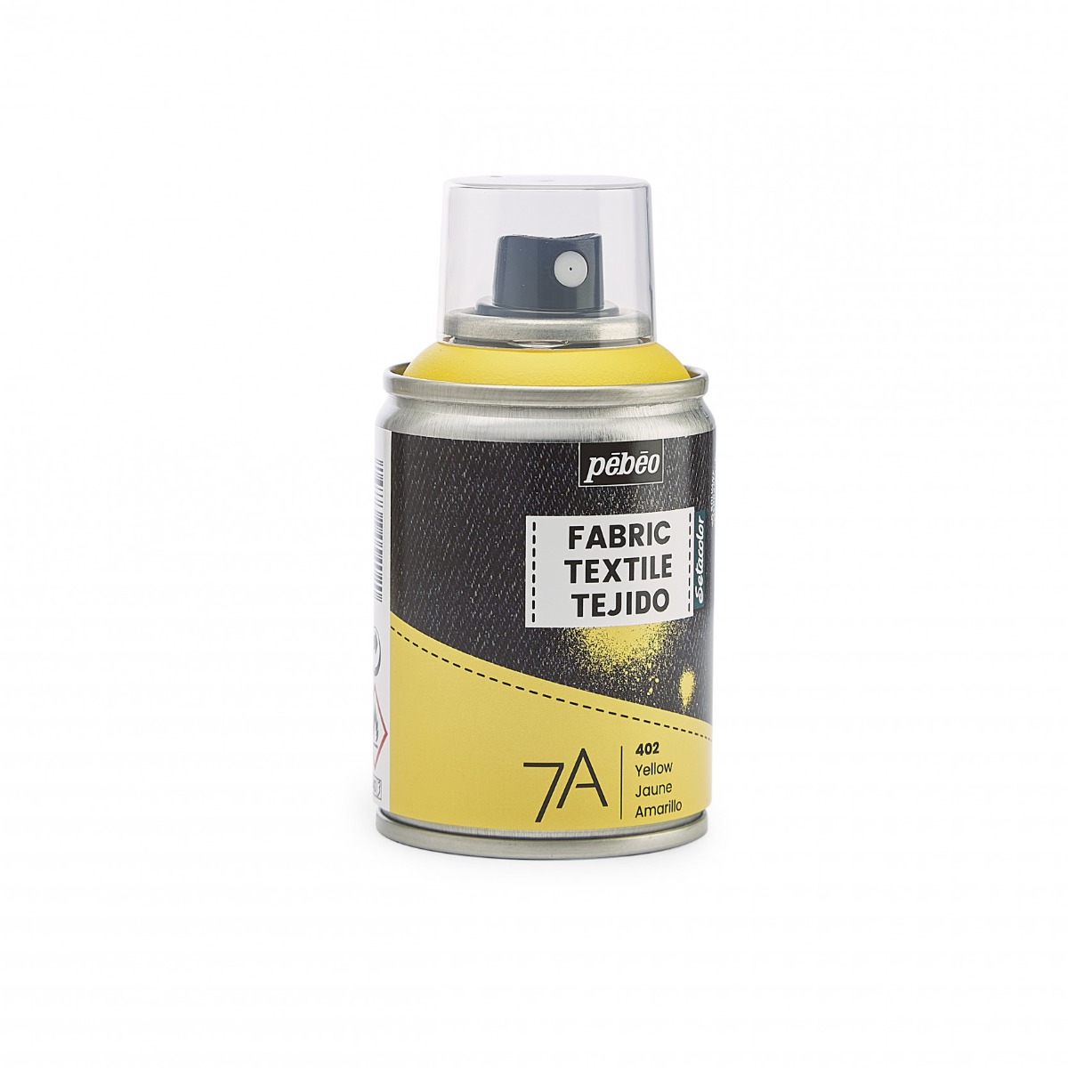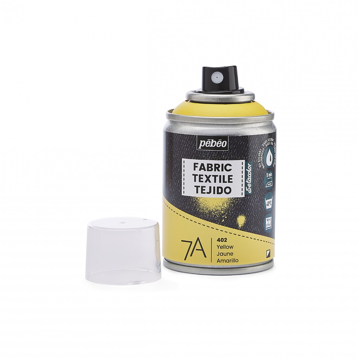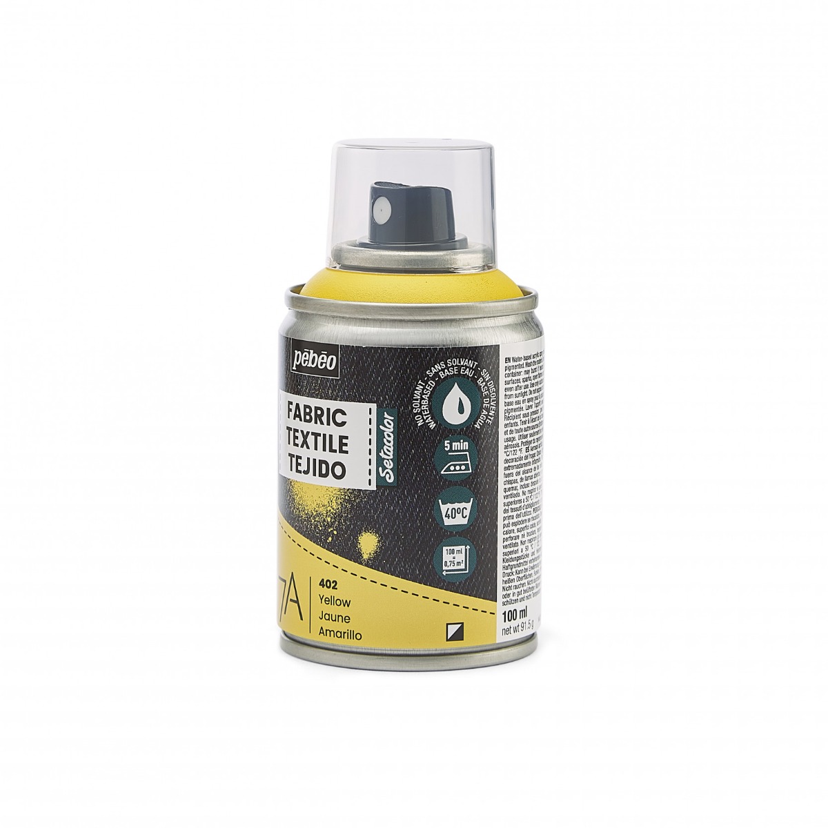 Aerosol water paint for fabrics, yellow colour. Semi-opaque colour, with a matt finish.