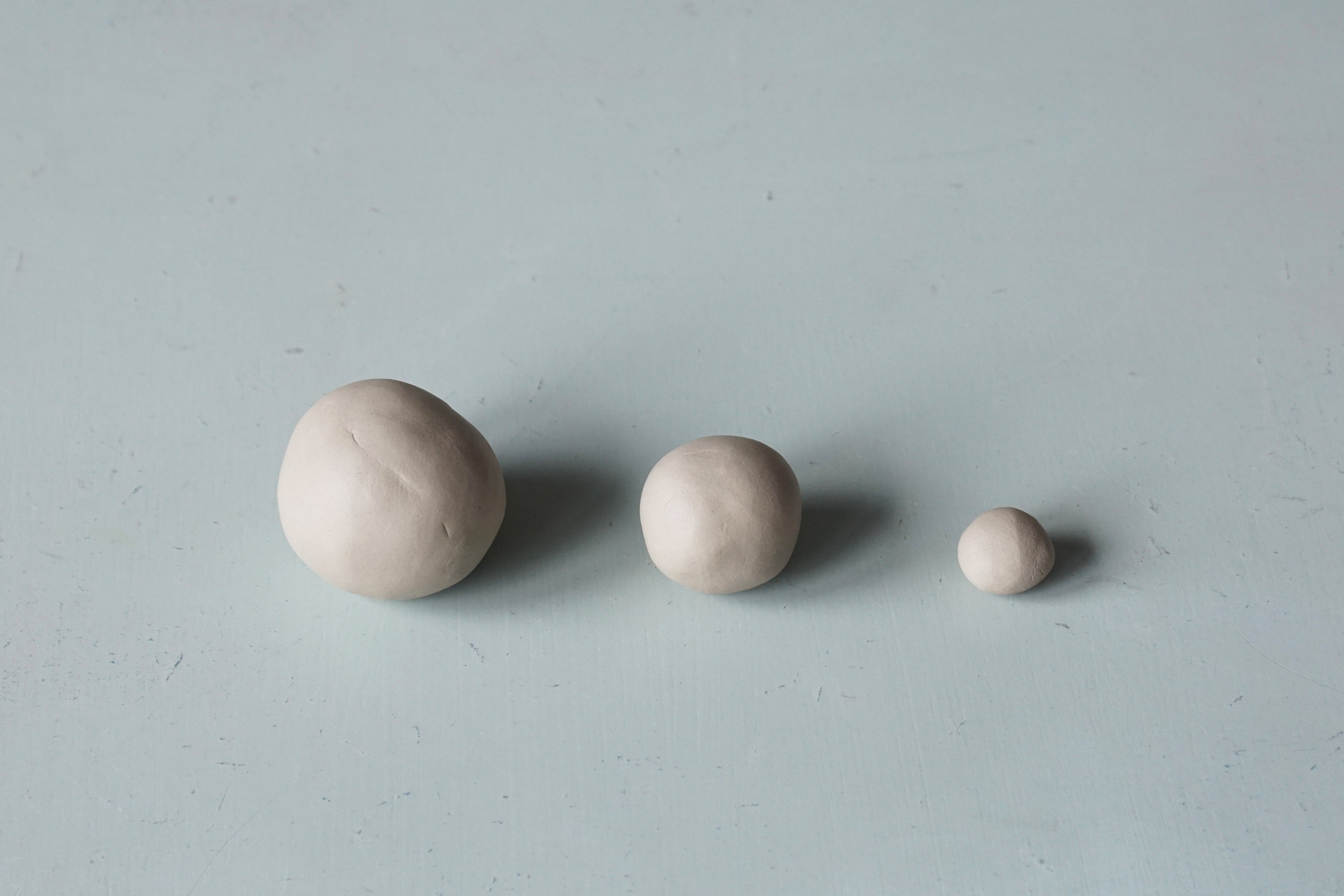 - Forme 3 boules de terre : une d’environ 3cm de diamètre, une de 2 cm et une de 1 cm