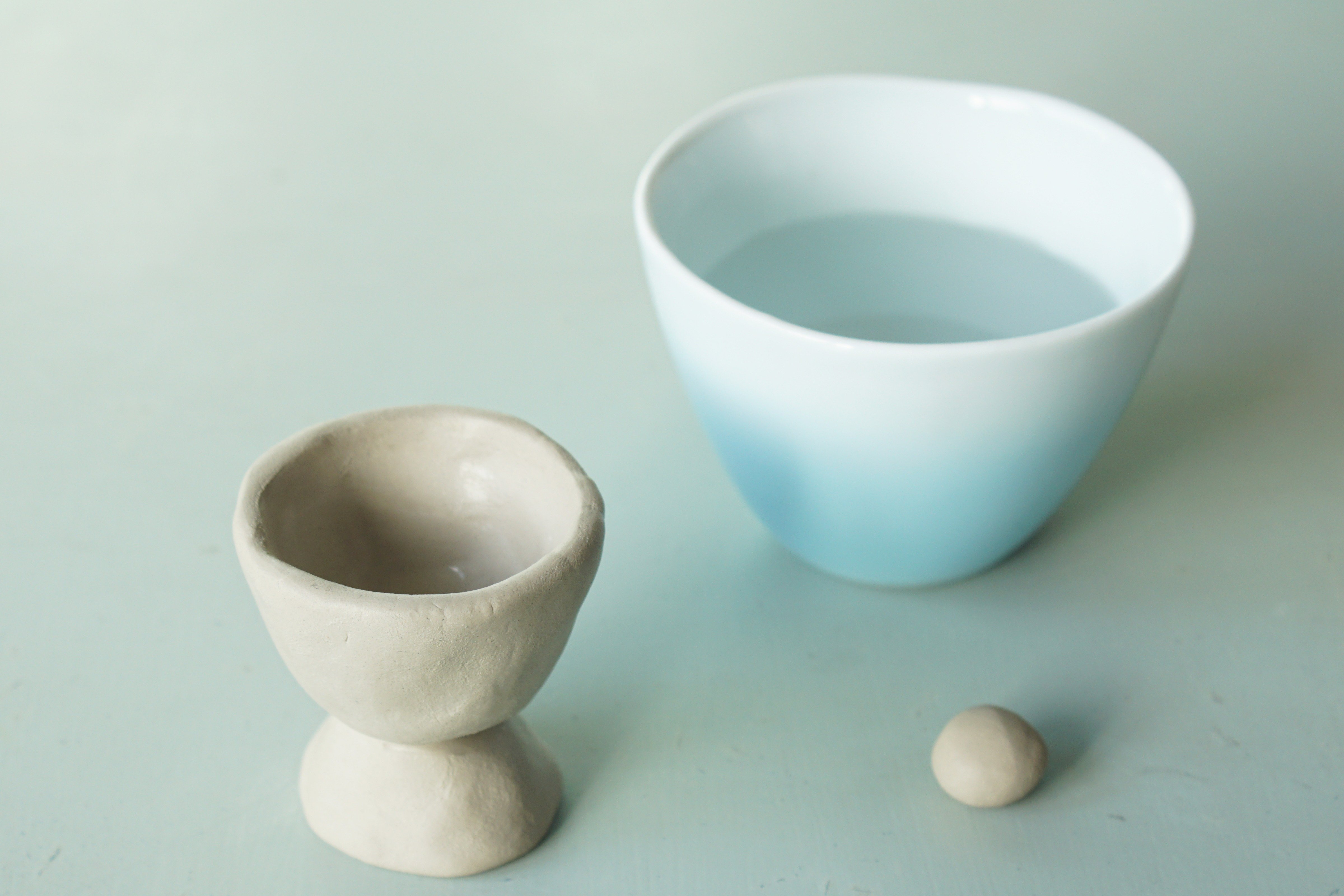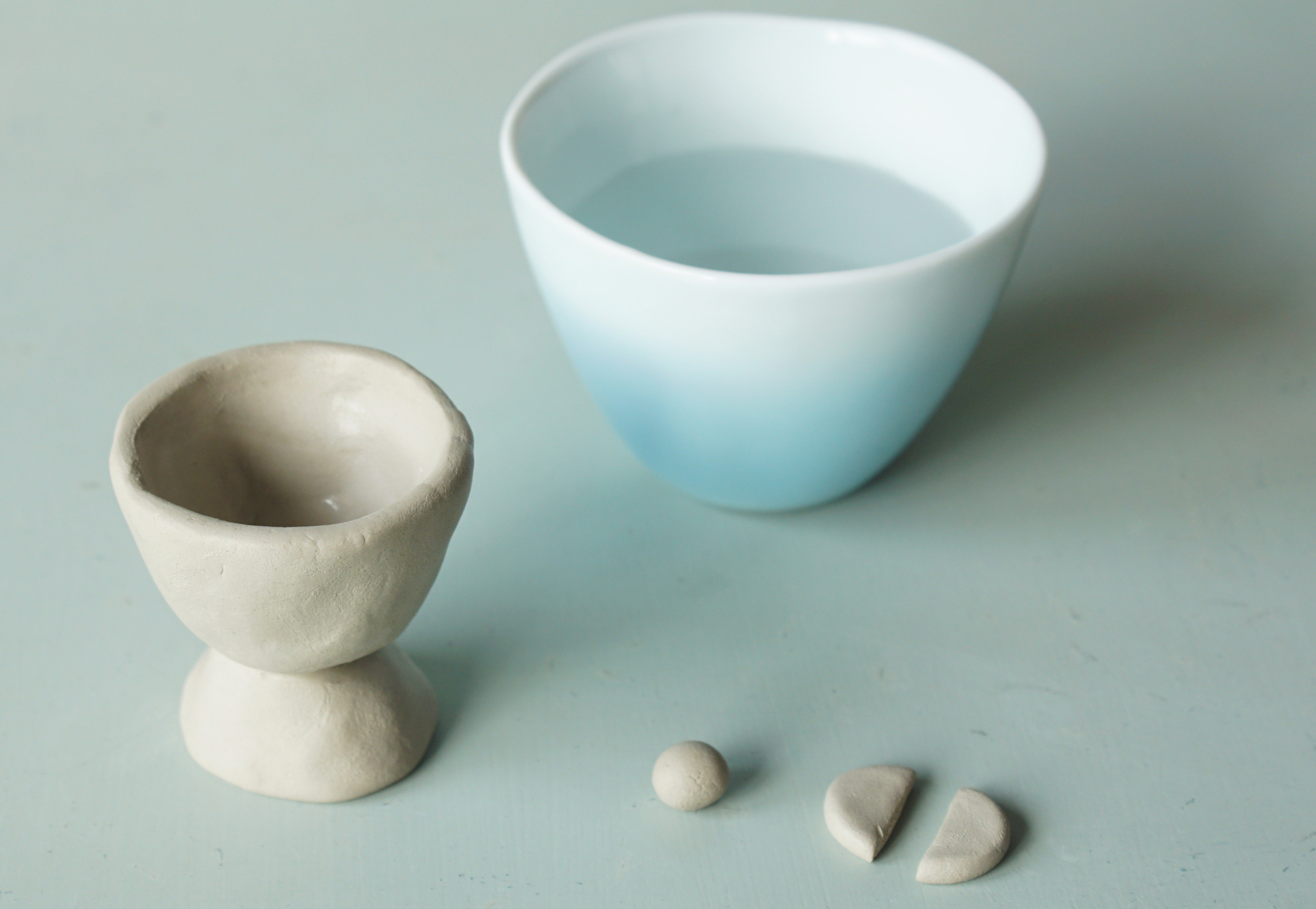 - Lisse l’ensemble du coquetier avec un doigt humidifié.