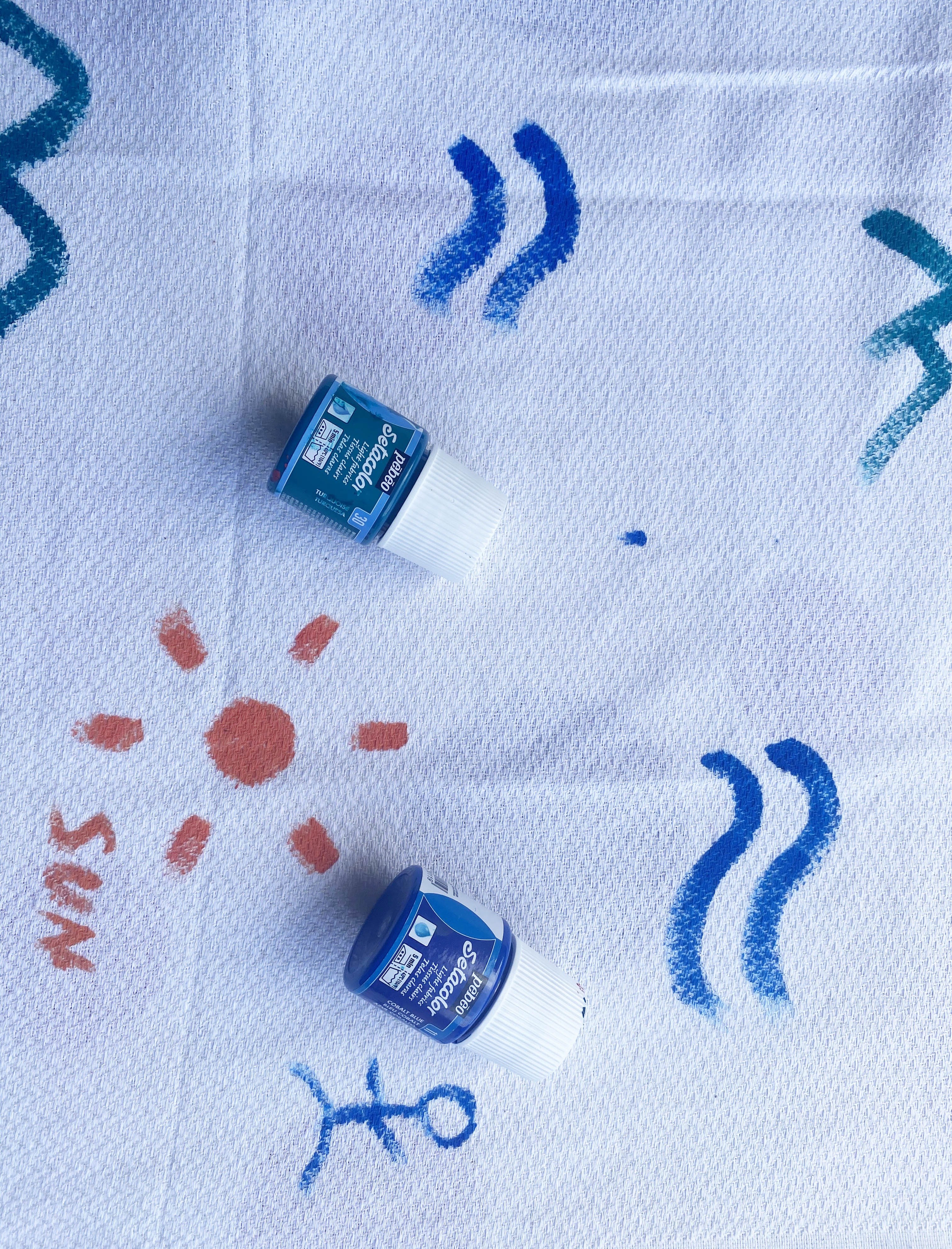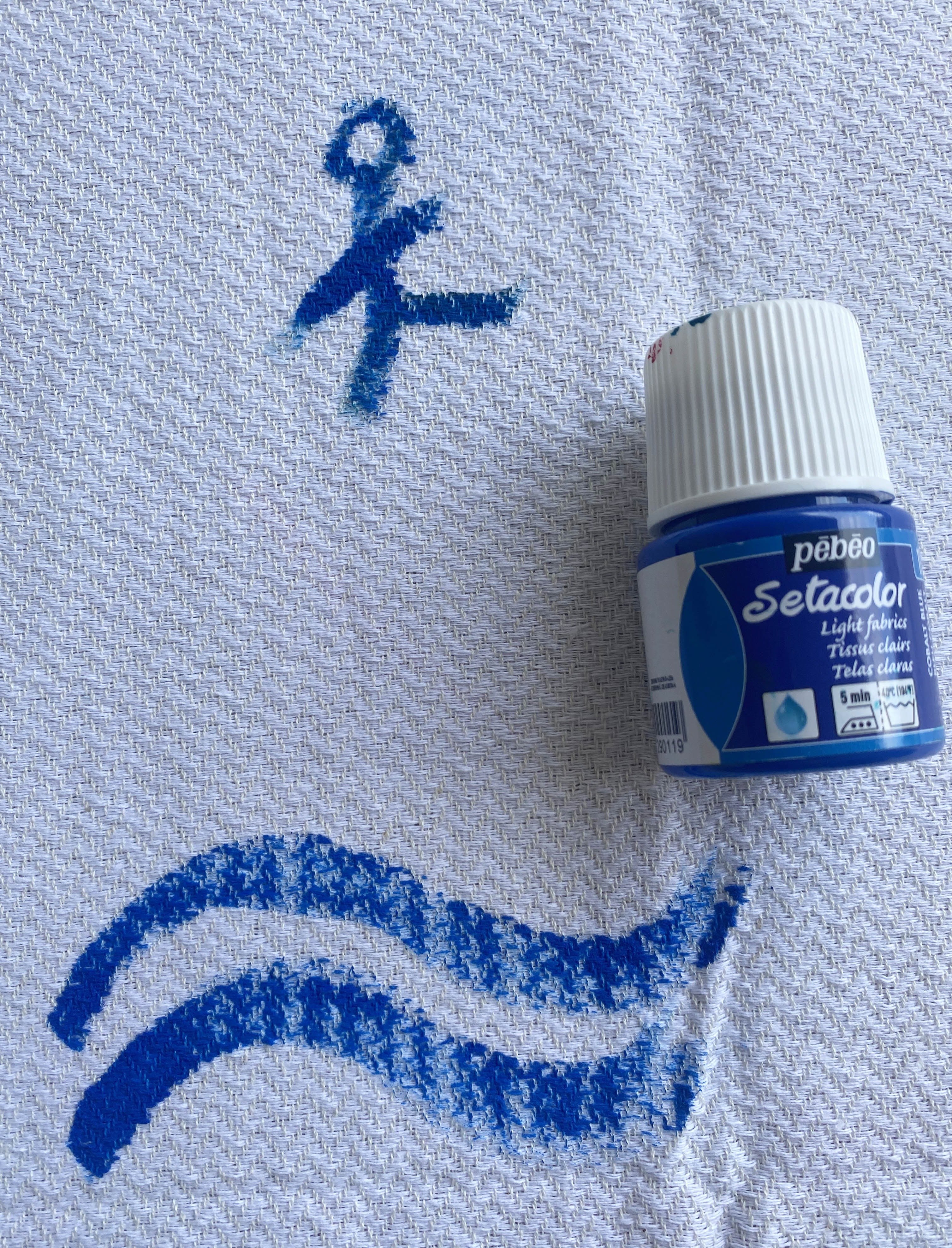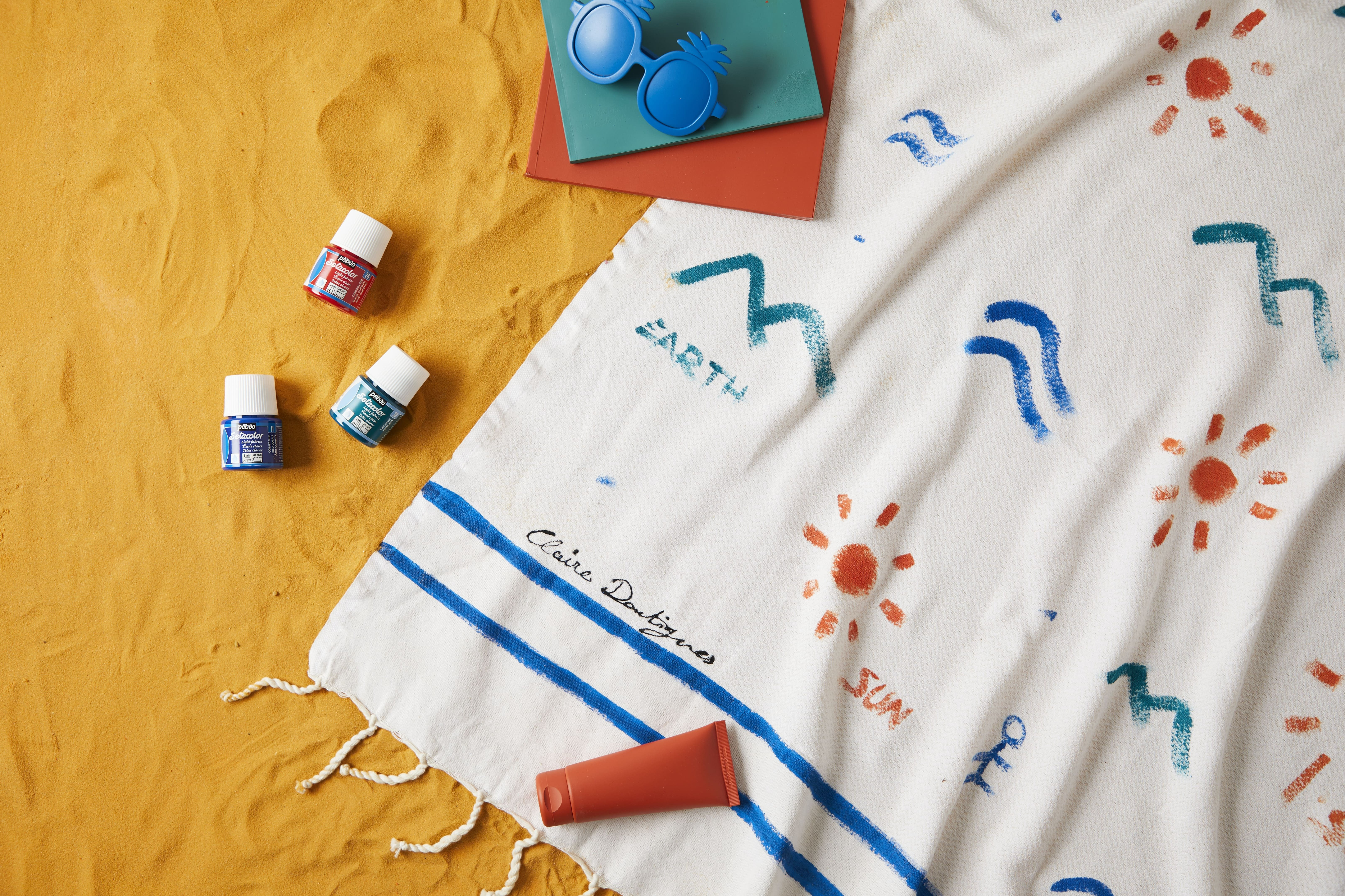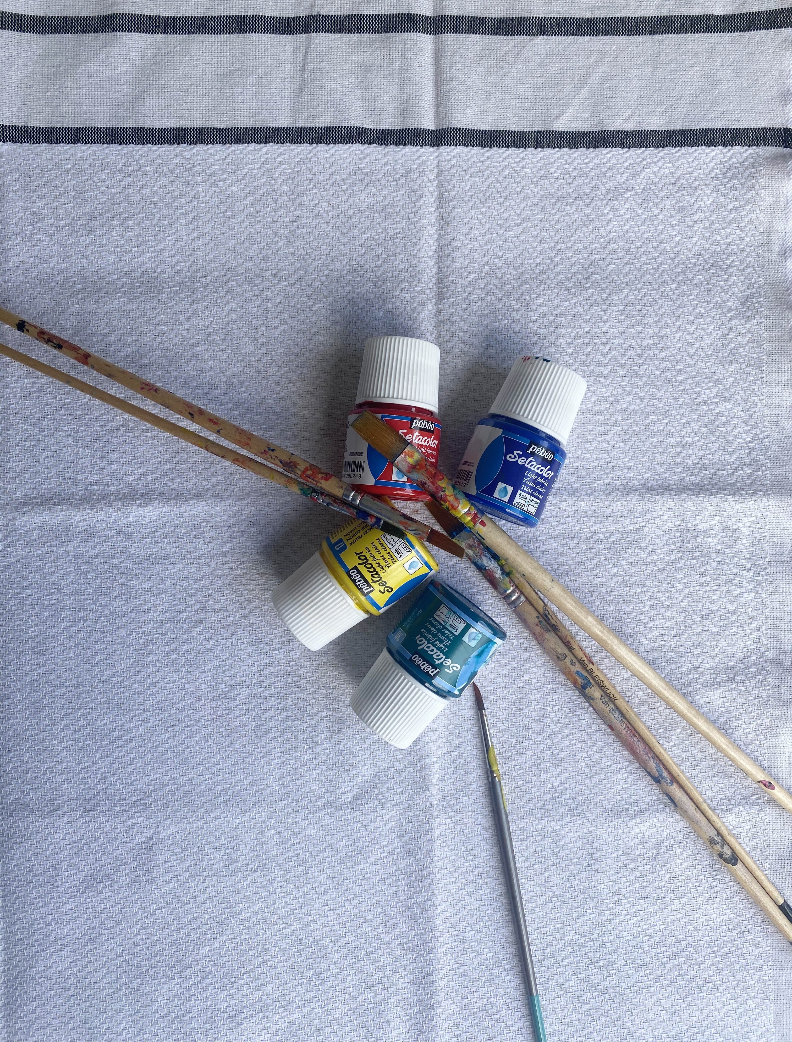 - Peindre les bandes de la fouta de la couleur souhaitée avec SETACOLOR OPAQUE.
