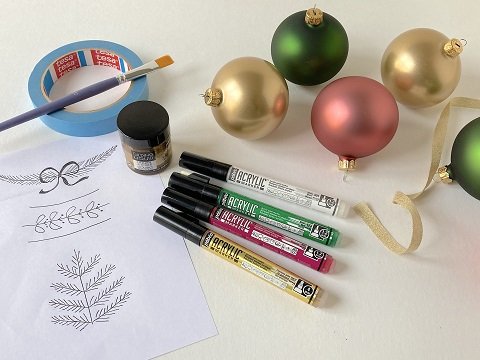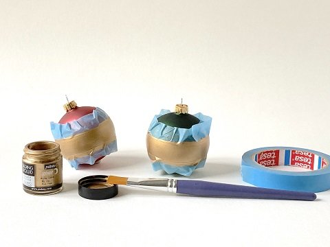 - Sur quelques boules détourez une bande au centre avec le ruban de masquage.