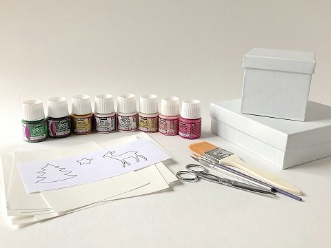 - Commencez par passer avec le spalter une ou deux couches de blanc pour neutraliser vos boites et faire disparaitre les motifs éventuels.