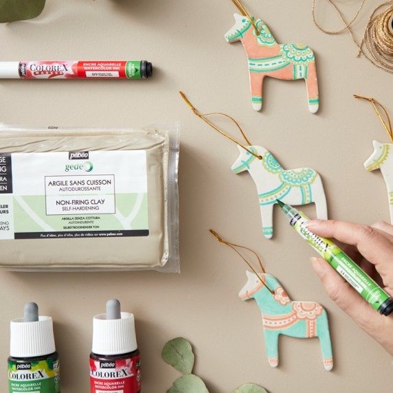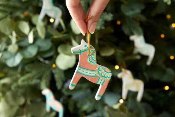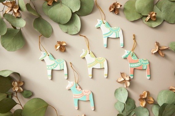 - Une fois que tout est sec et prêt, accrochez vos chevaux en argile sur le sapin de Noël.