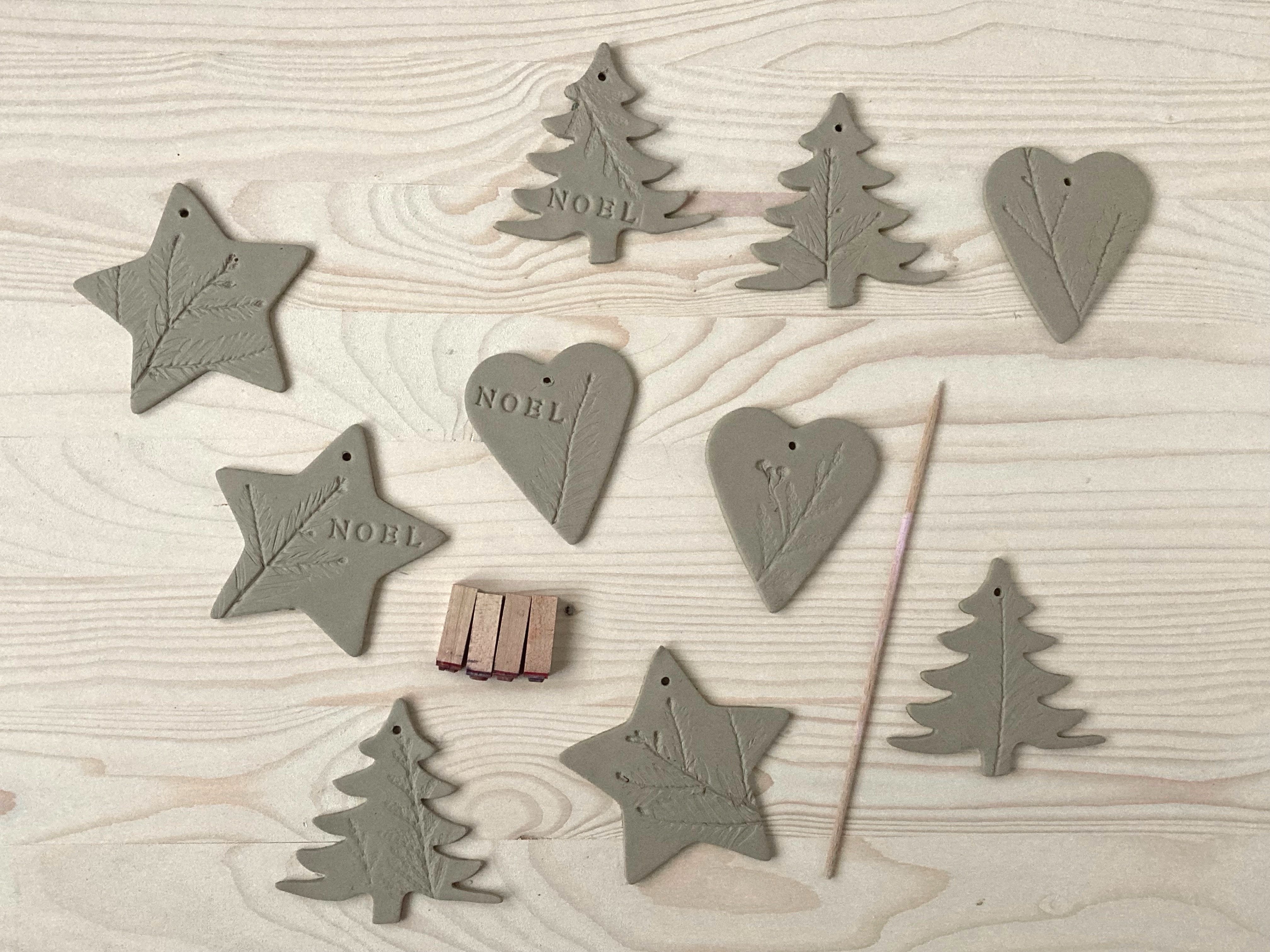 • (Vous pouvez rouler les chutes d’argile en boule et les étaler pour faire de nouvelles découpes en veillant à ce qu’il n’y ai pas de bulles d’air ou de fissures qui risquent de craqueler au séchage).