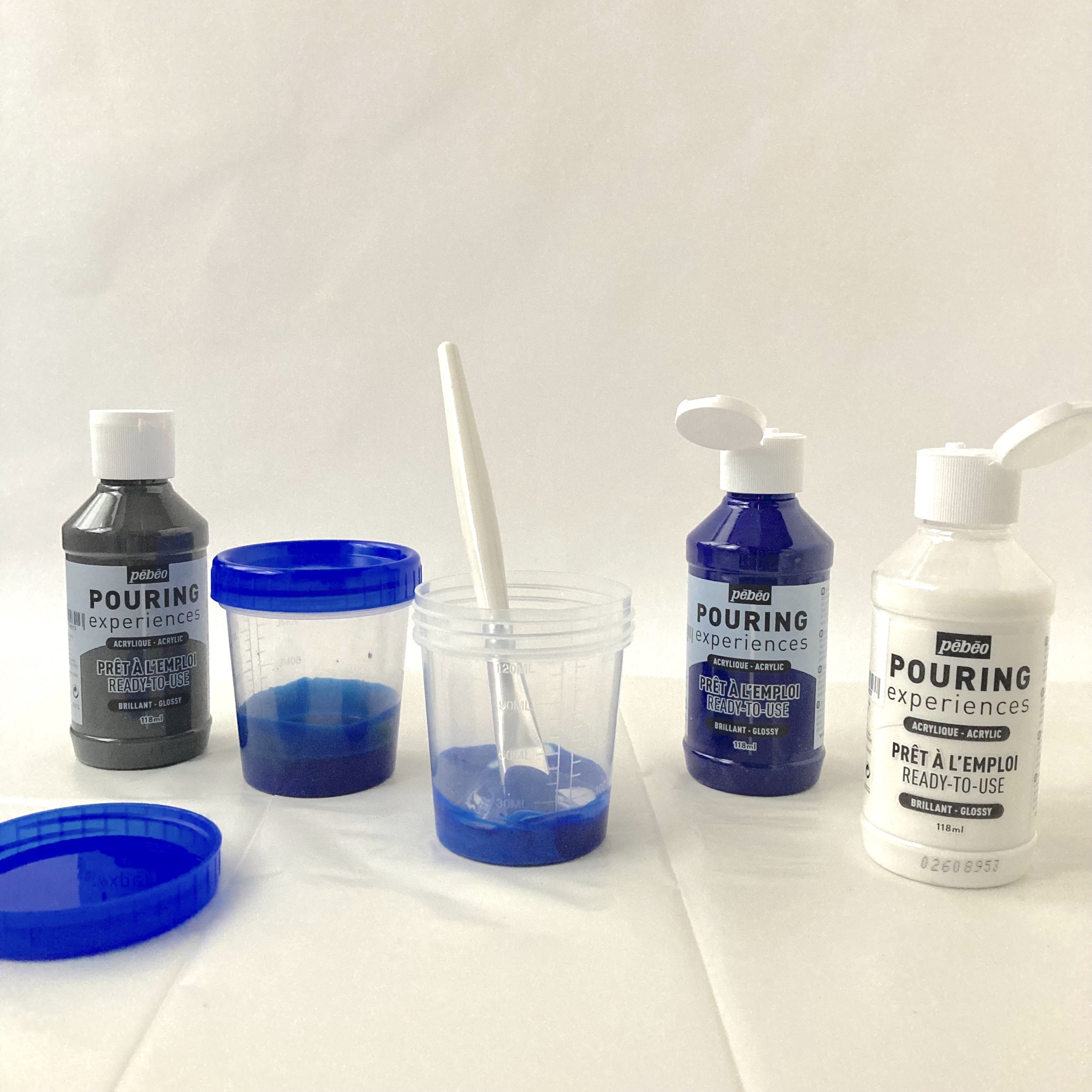 - Pouring experience : Peinture coloris Blanc de titane / Beige Rose / Magenta foncé / Bleu Cyan / Gris