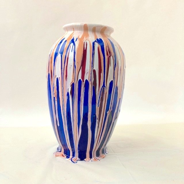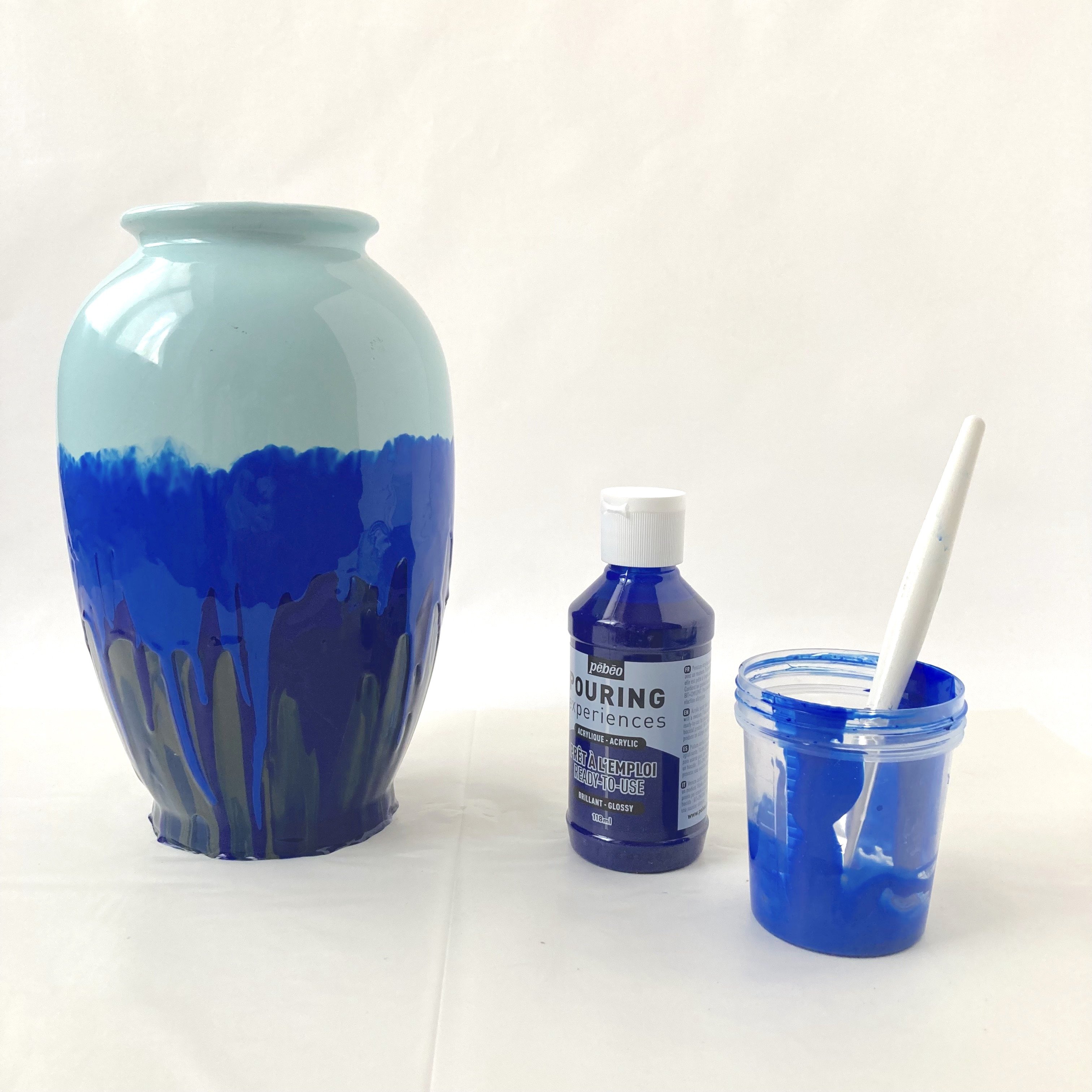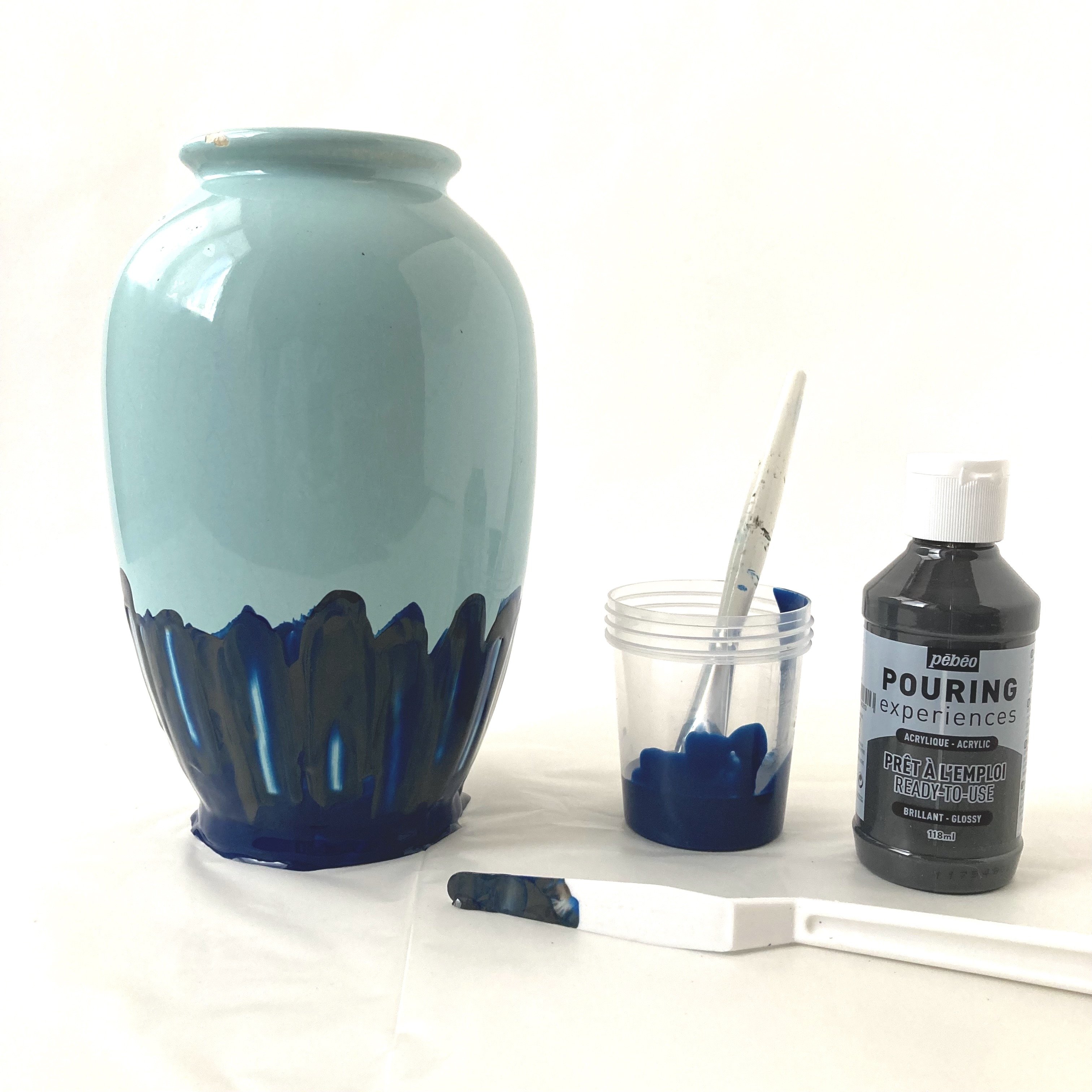 - Il faut que la couche soit assez épaisse pour couler le long du vase, mais pas trop pour ne pas recouvrir entièrement les couleurs précédentes.