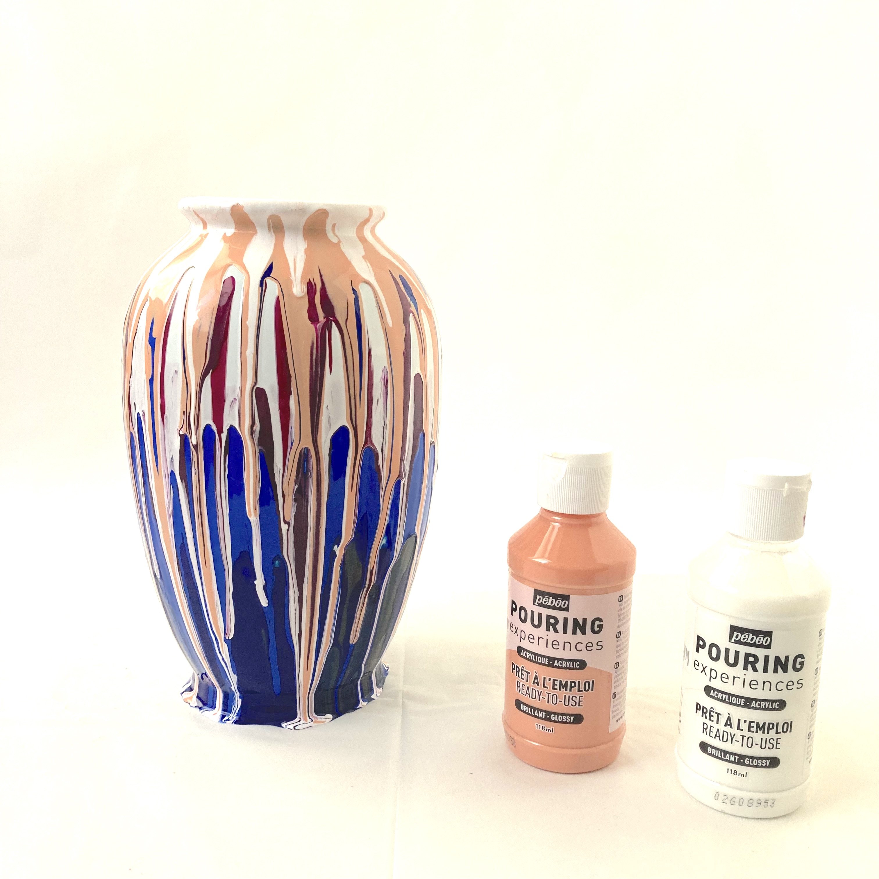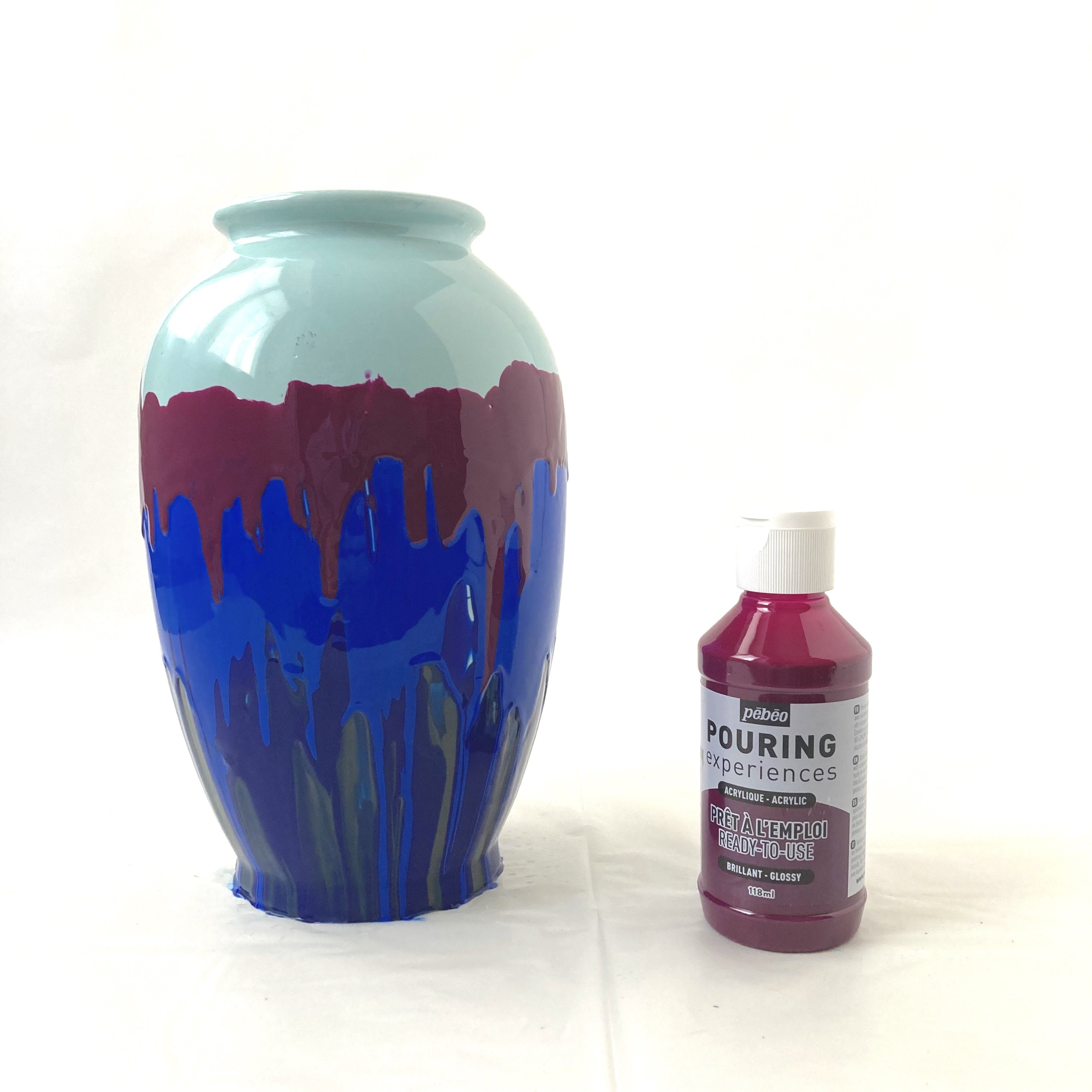 - Laissez la peinture Pouring couler le long du vase et créer les effets au fur et à mesure.
