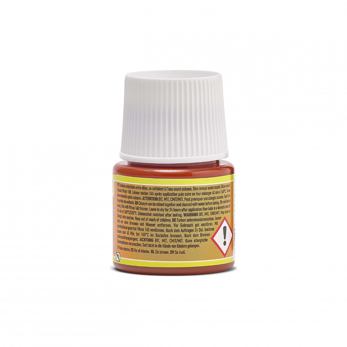 Seules les surfaces non destinées à être mises en contact avec les aliments doivent être décorées. Il n’y a pas de danger à boire dans un verre décoré avec Vitrea 160 si l’application s’arrête à plus ou moins 1 cm du bord (principe du verre à moutarde). Néanmoins, des tests de migration effectués par un laboratoire accrédité ont permis de mettre en évidence qu’un contact accidentel des zones décorées avec les aliments ne représentait pas un danger pour la santé.