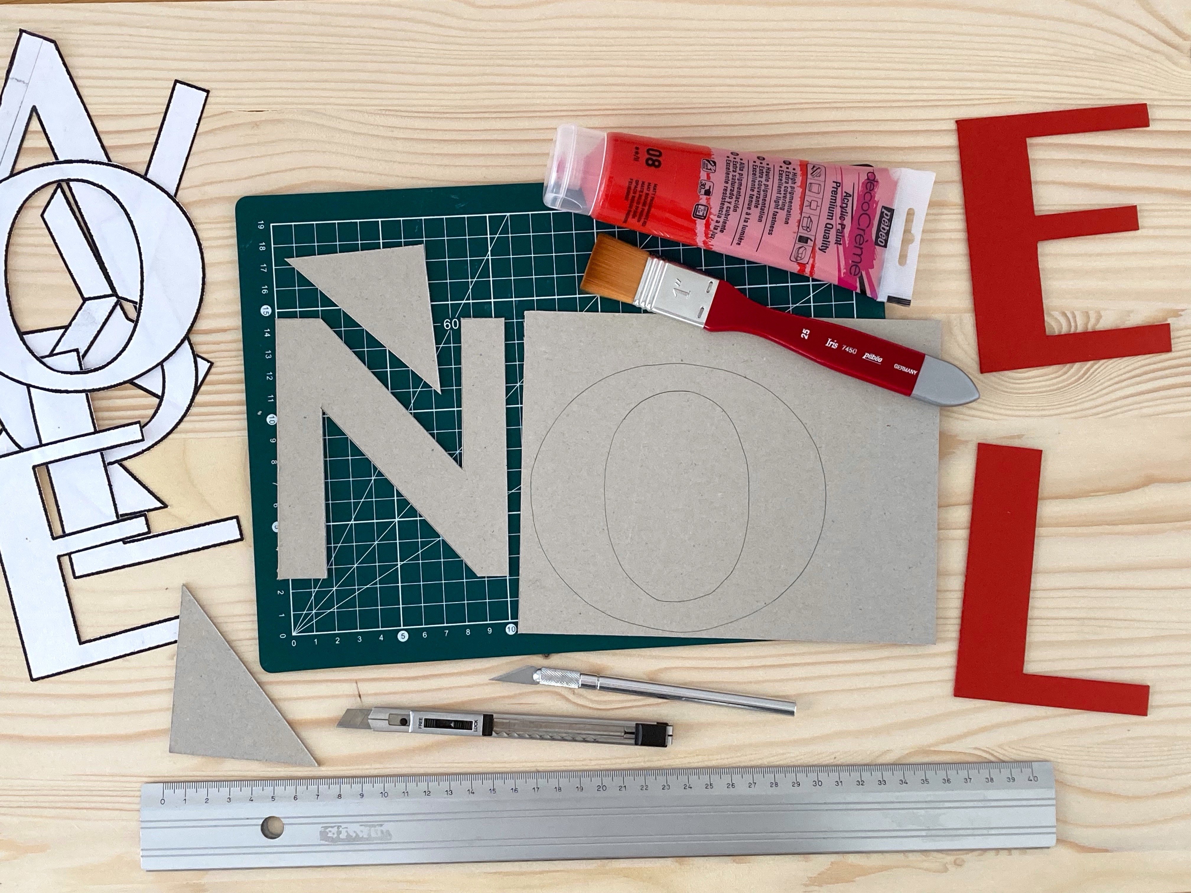 - Увеличьте и вырежьте буквы, чтобы использовать их как трафарет.