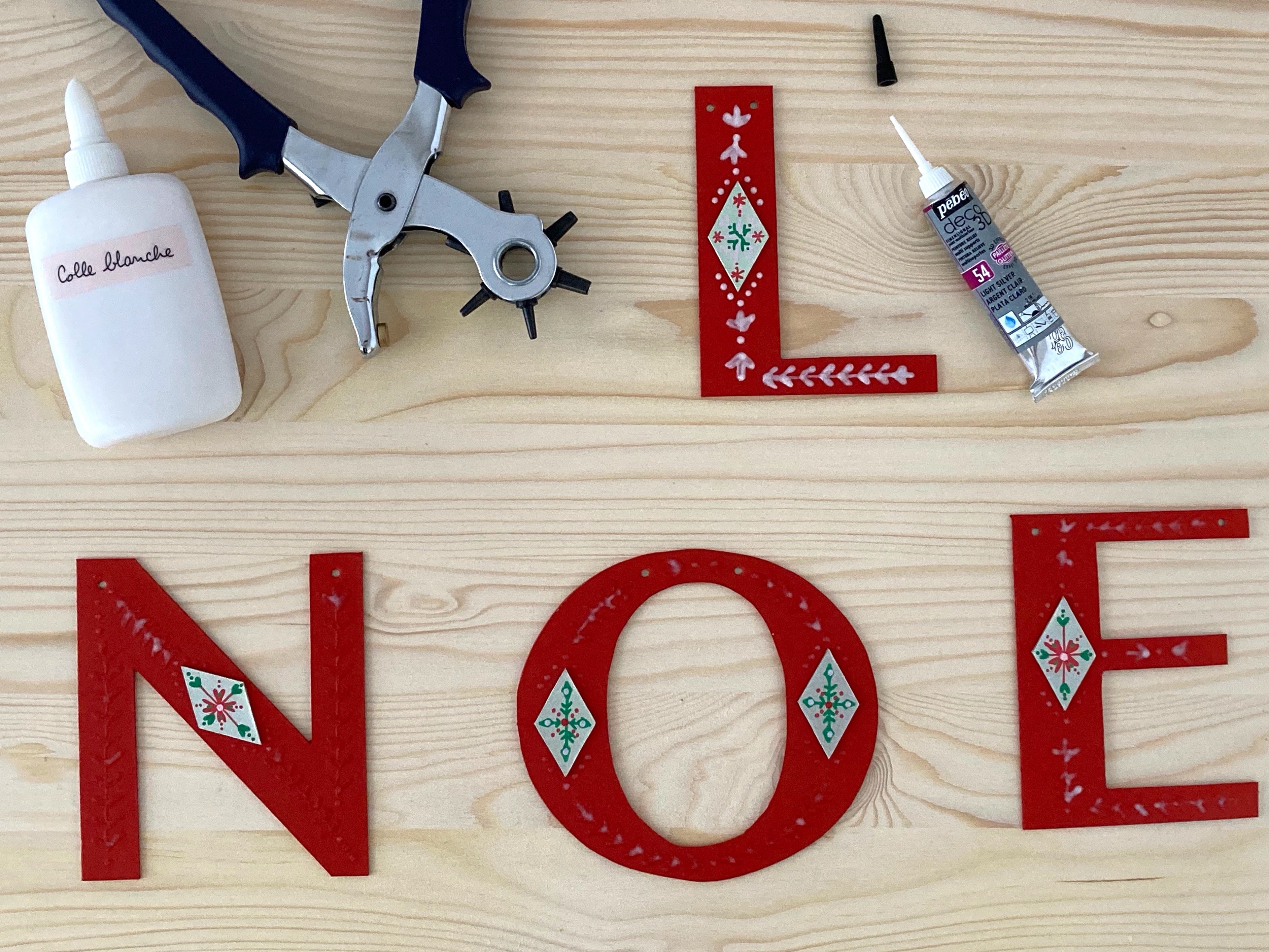 - Проделайте отверстия дыроколом в верхней части букв и проденьте красивую ленточку, чтобы гирлянду можно было повесить.