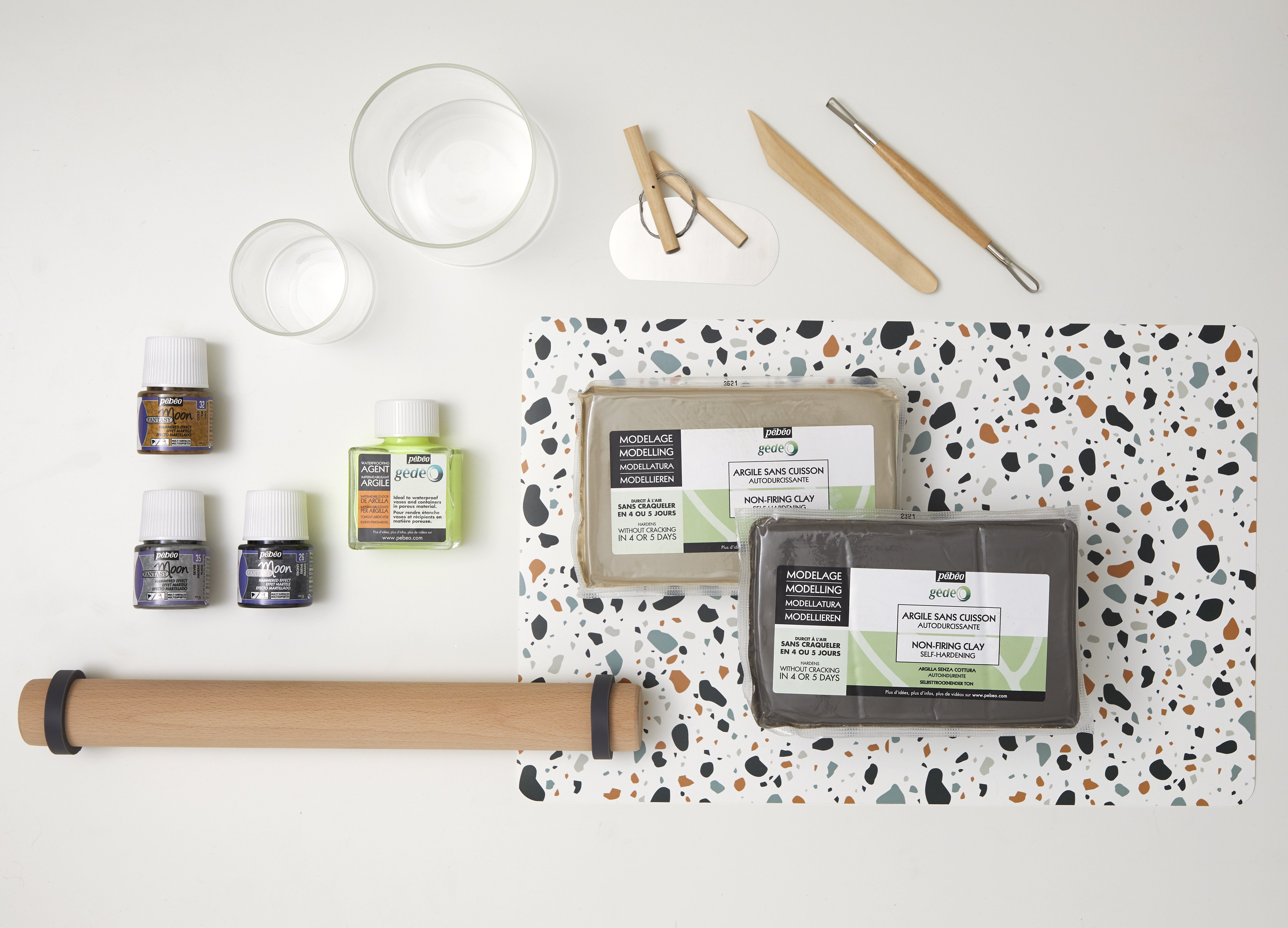 - Нанесите гель на внешние стенки баночки (чтобы потом было легче отделить изделие), затем налепите на неё глиняный прямоугольник. Отрежьте лишнюю глину, закройте края и разгладьте форму водой и инструментами для лепки.