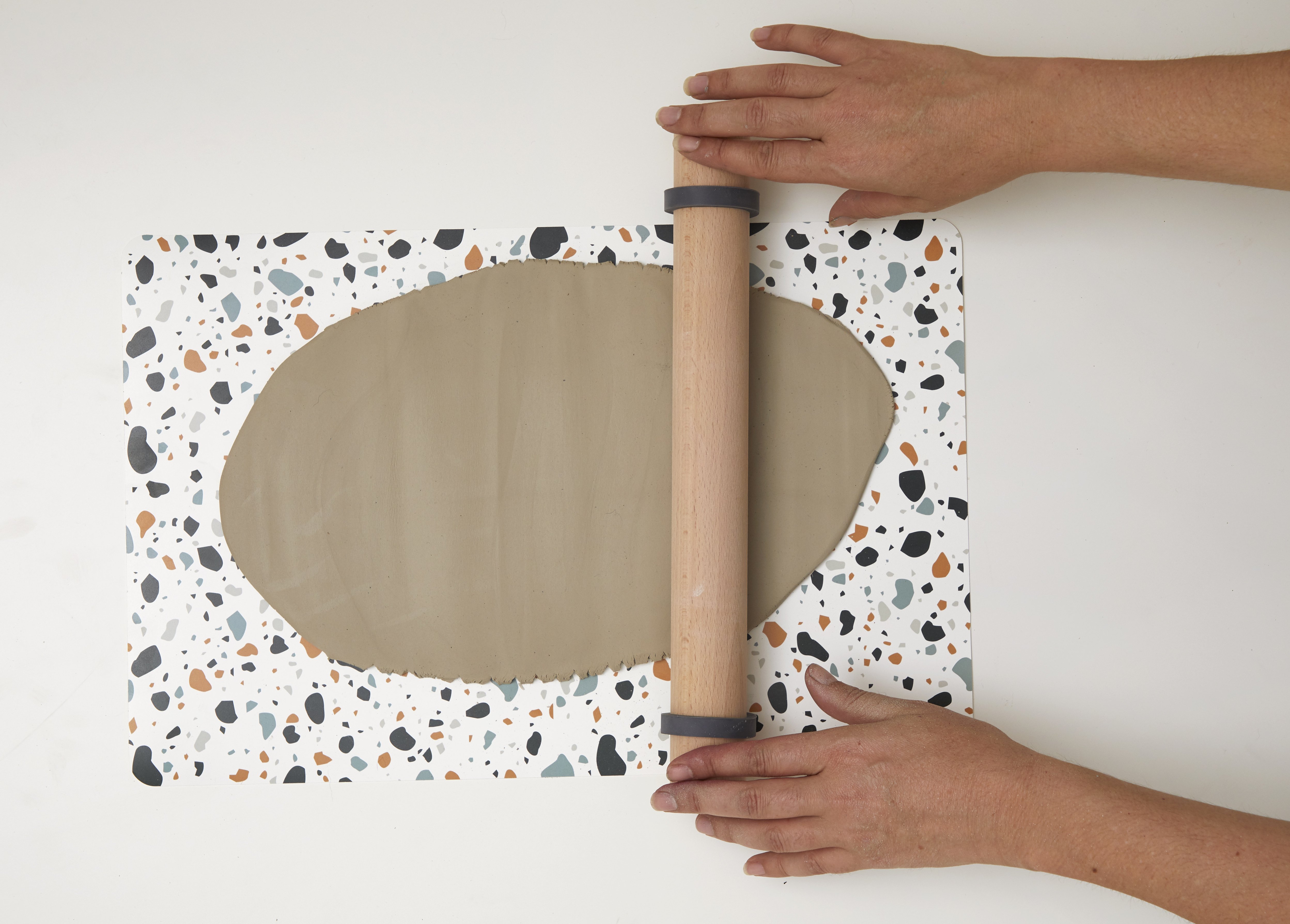 - Раскатайте глину скалкой (до толщины около 8 мм).