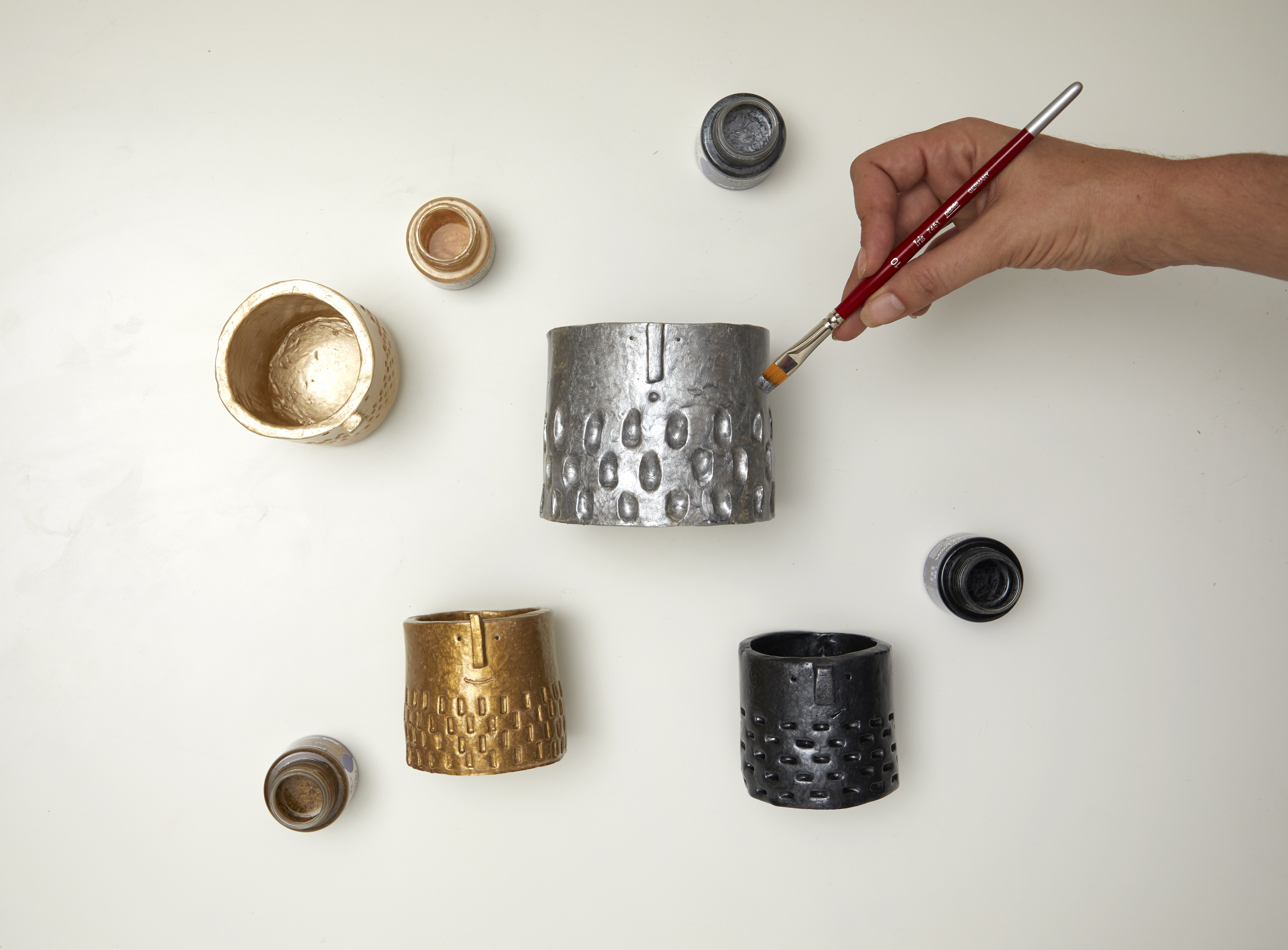 - Раскрасьте горшочки краской Moon Fantasy. Достаточно густо закрасить один раз. Для полного высыхания необходимо 10 часов.