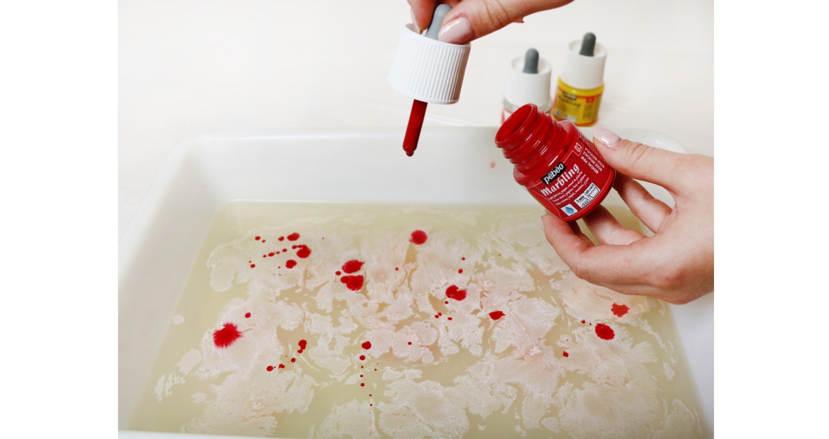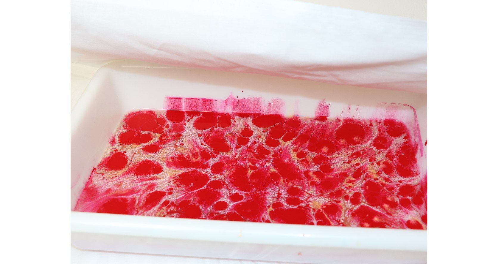 Промойте ткань, чтобы удалить излишки материала марморирования, и дайте высохнуть в течение 2 часов.