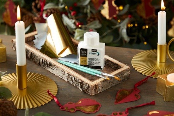 клей на места, где вы хотите добавить позолоту.