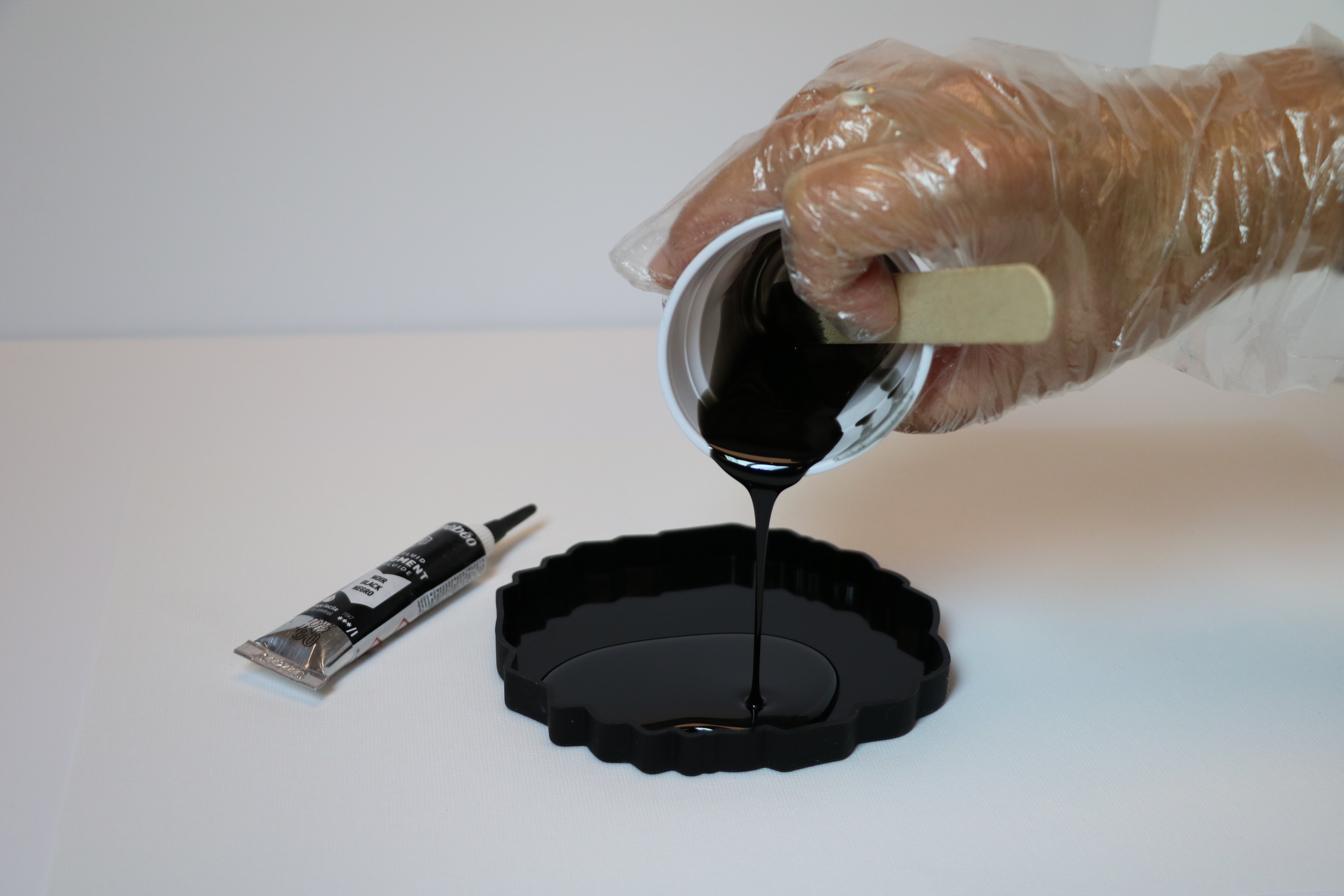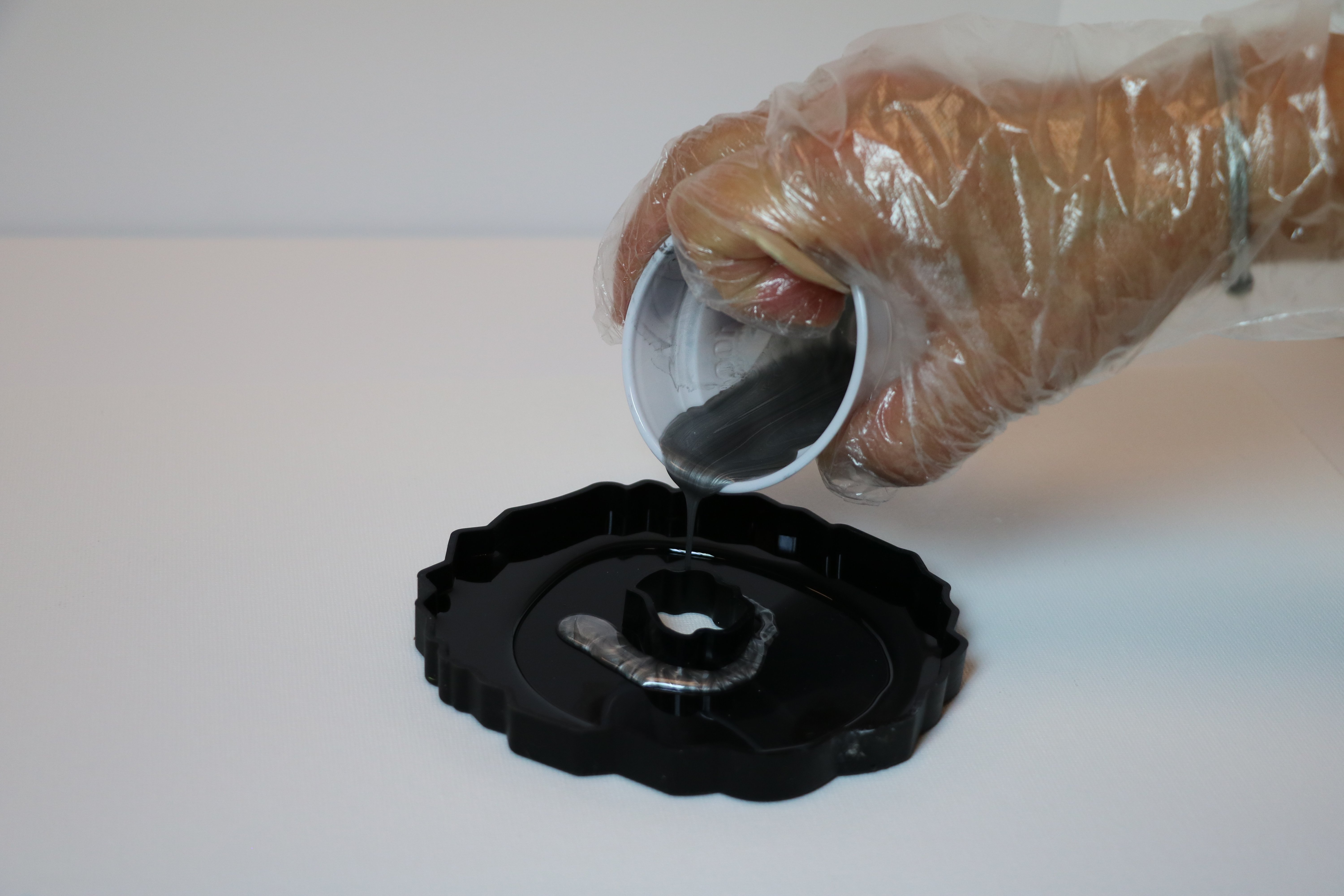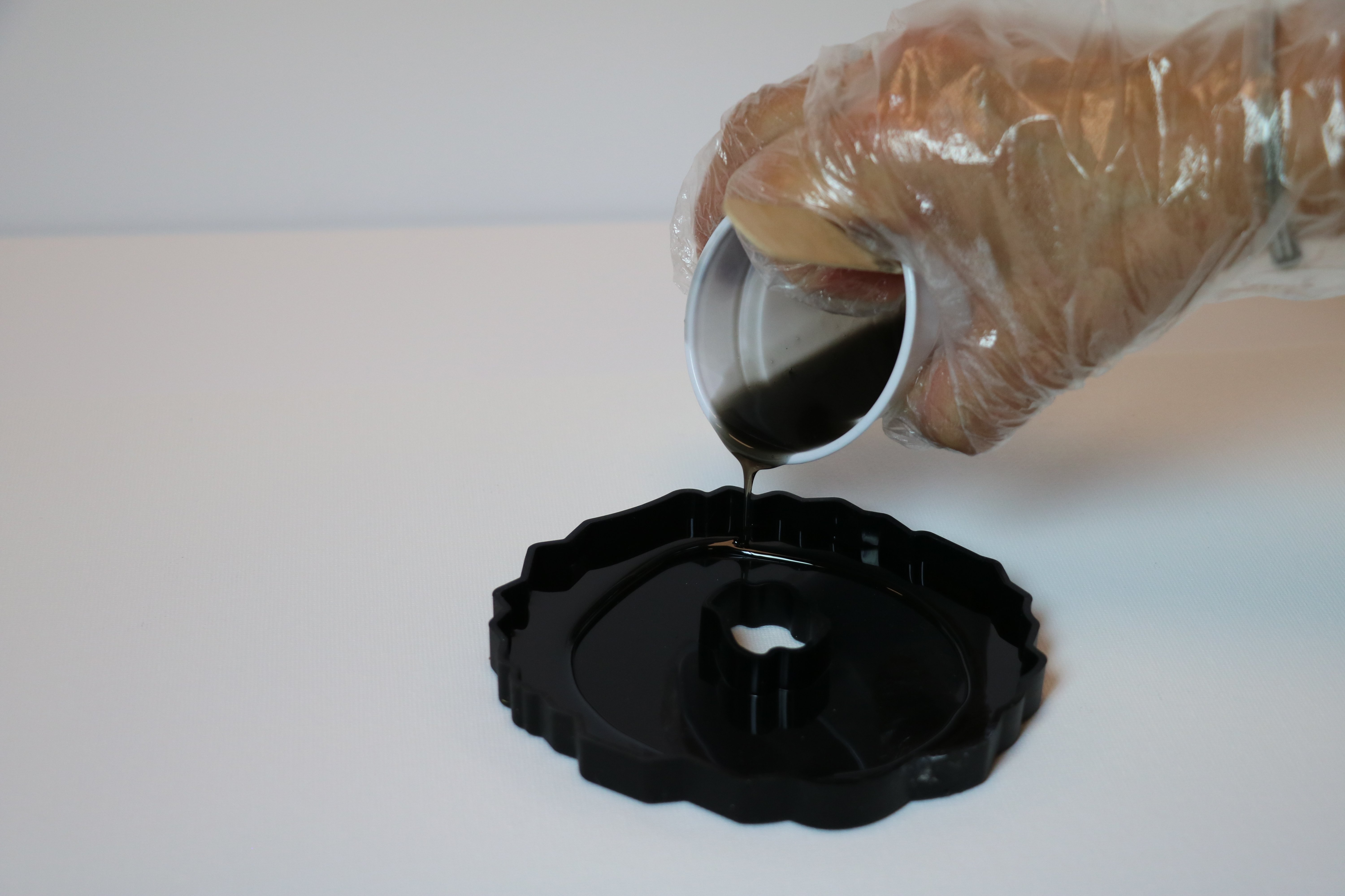 чёрный цвет смолой и налейте первый слой на 1-ю половину формы.