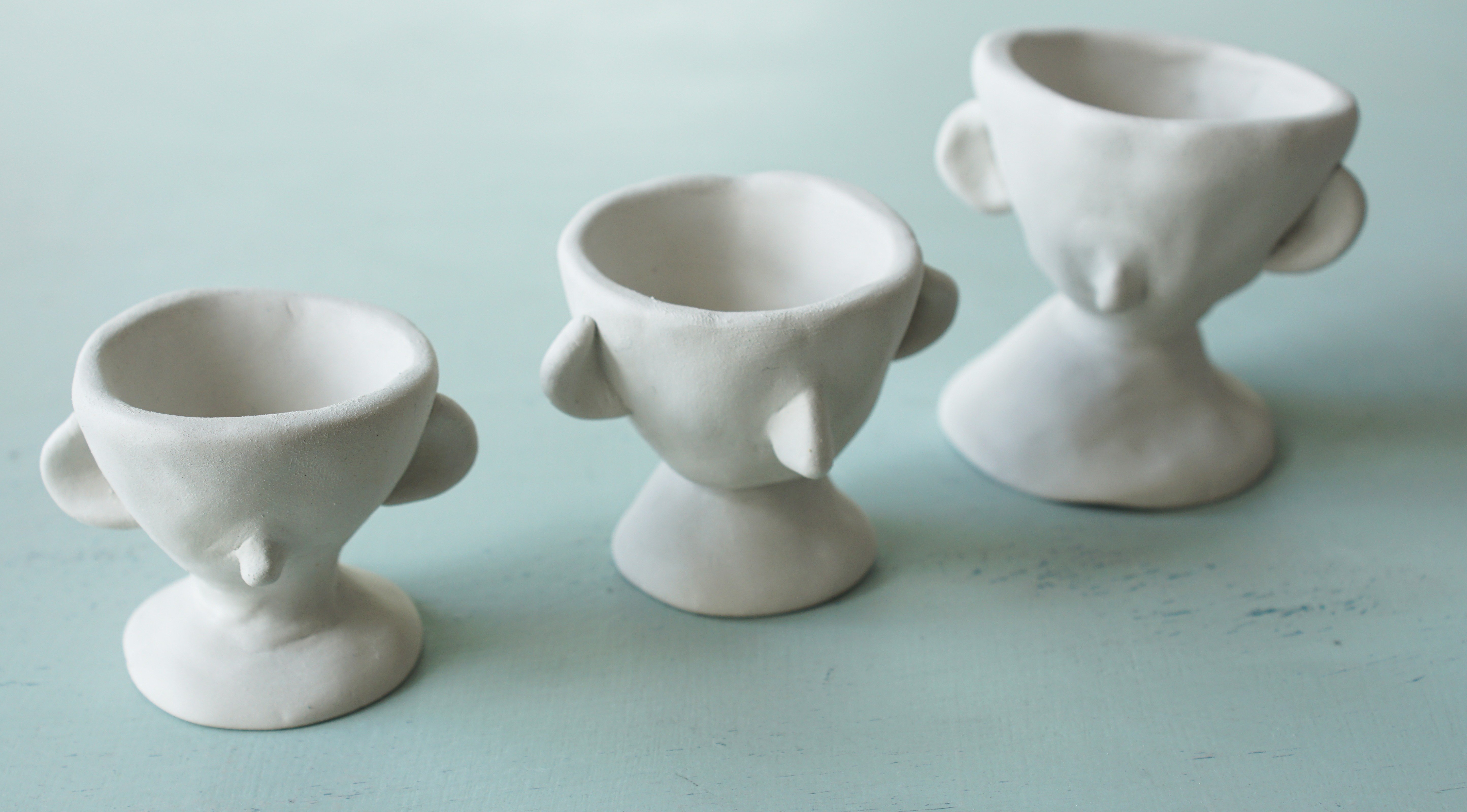 “Слепите фигурки из не требующей обжига глины и украсьте их, чтобы получились забавные подставки для яиц или удивительные маленькие вазочки. “