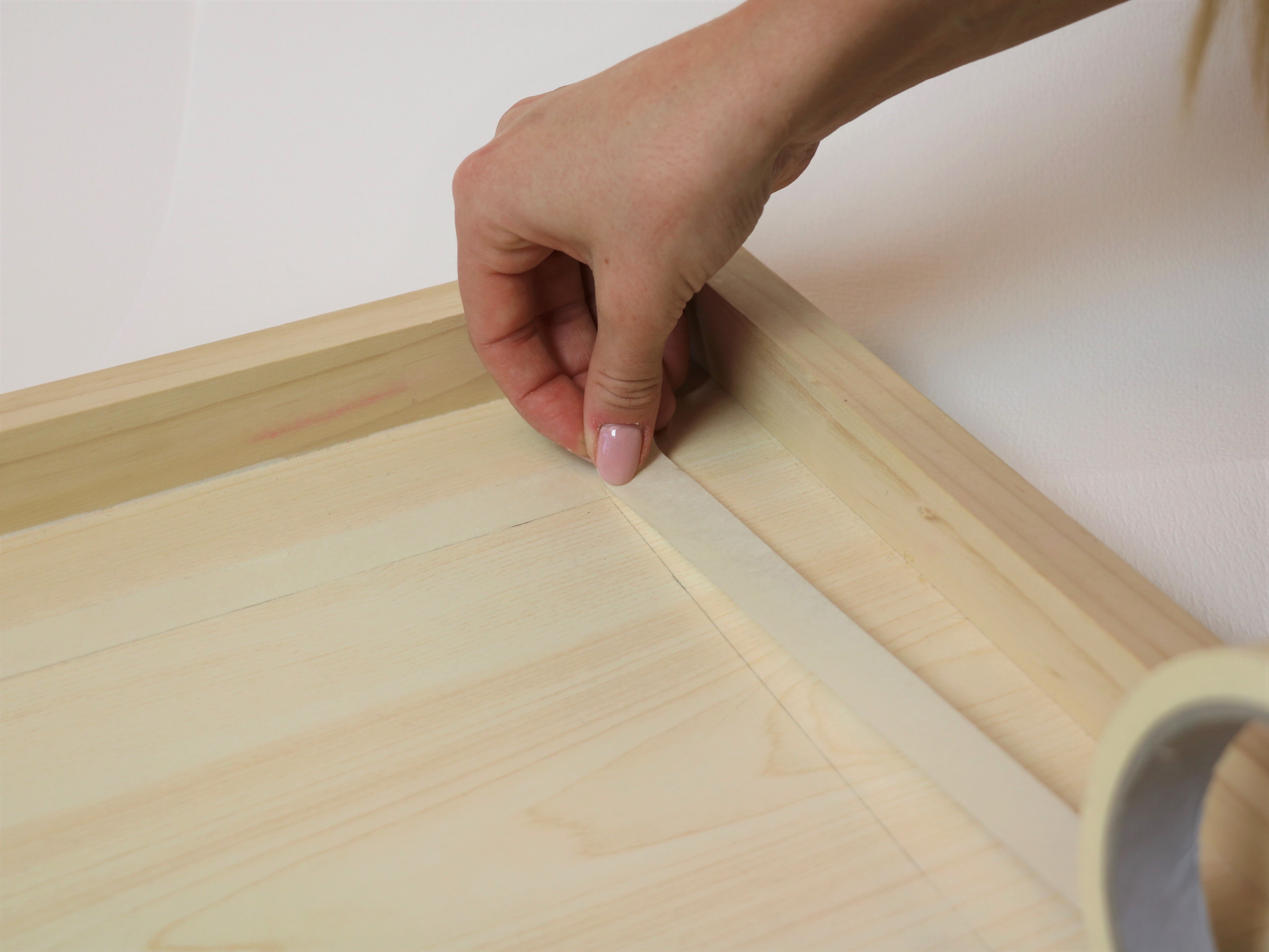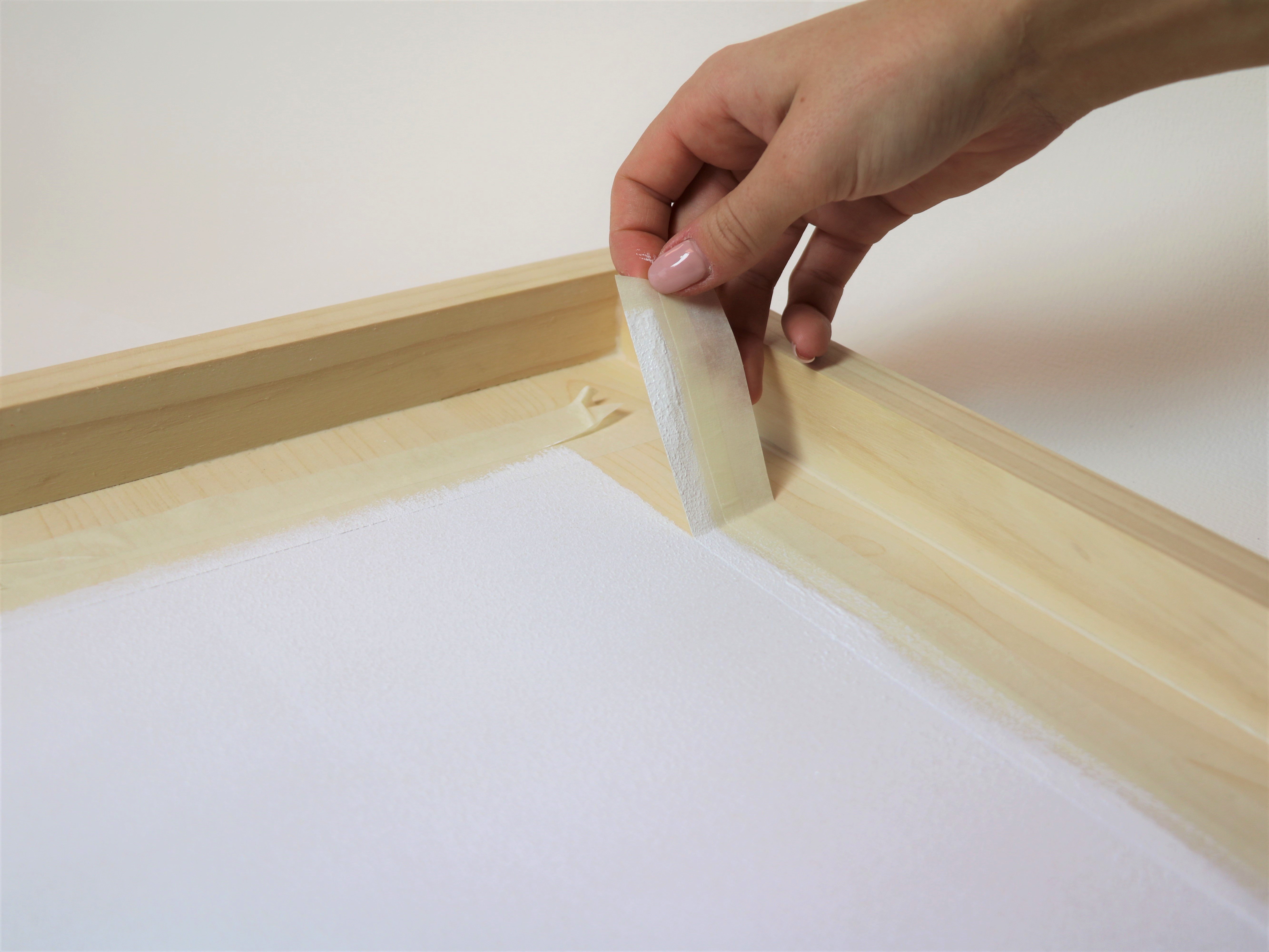 - Когда краска полностью высохнет, проклейте ленту по краю белого квадрата и по бортикам рамки.