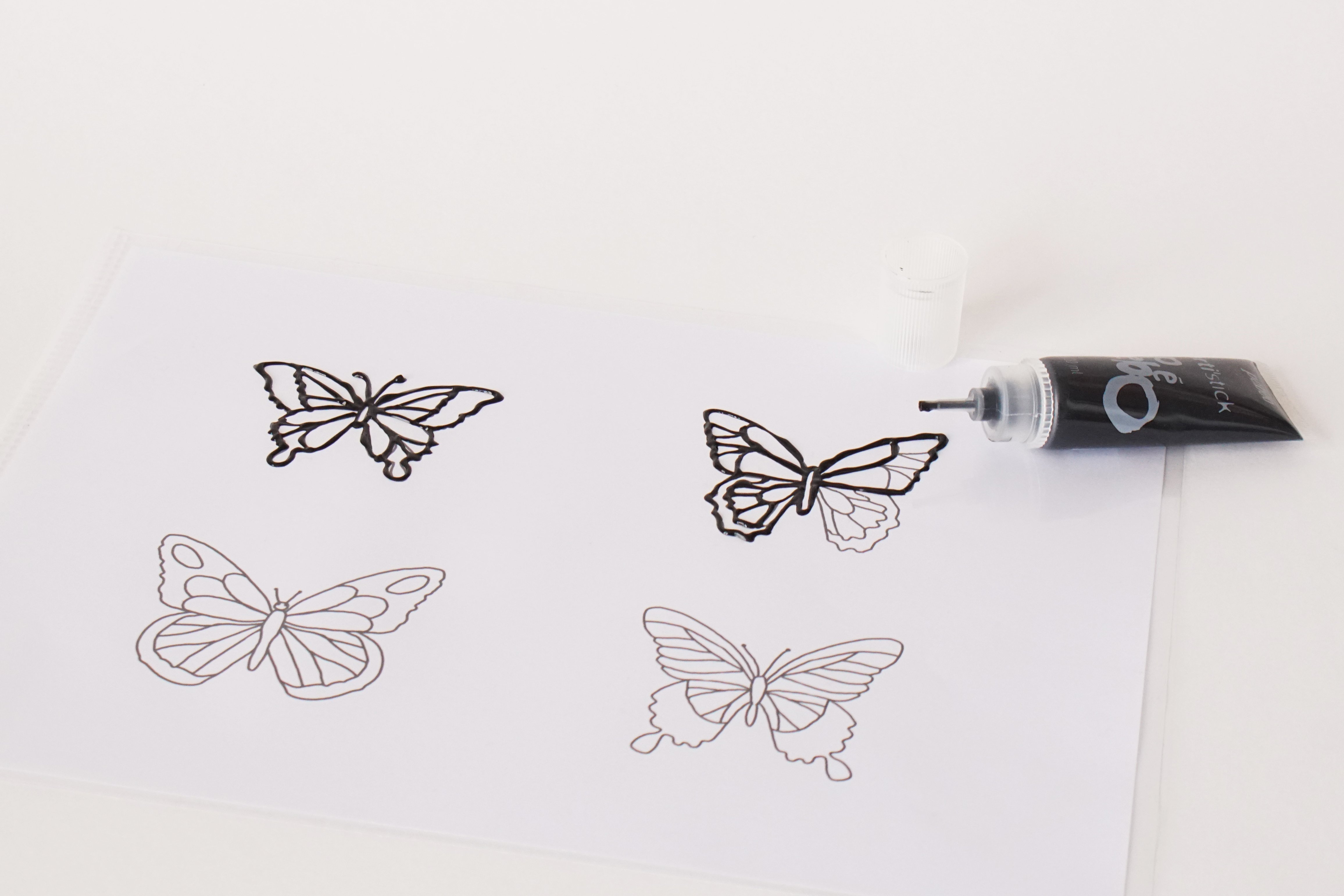 pochette plastique et dessine les contours de chaque papillon avec le cerne