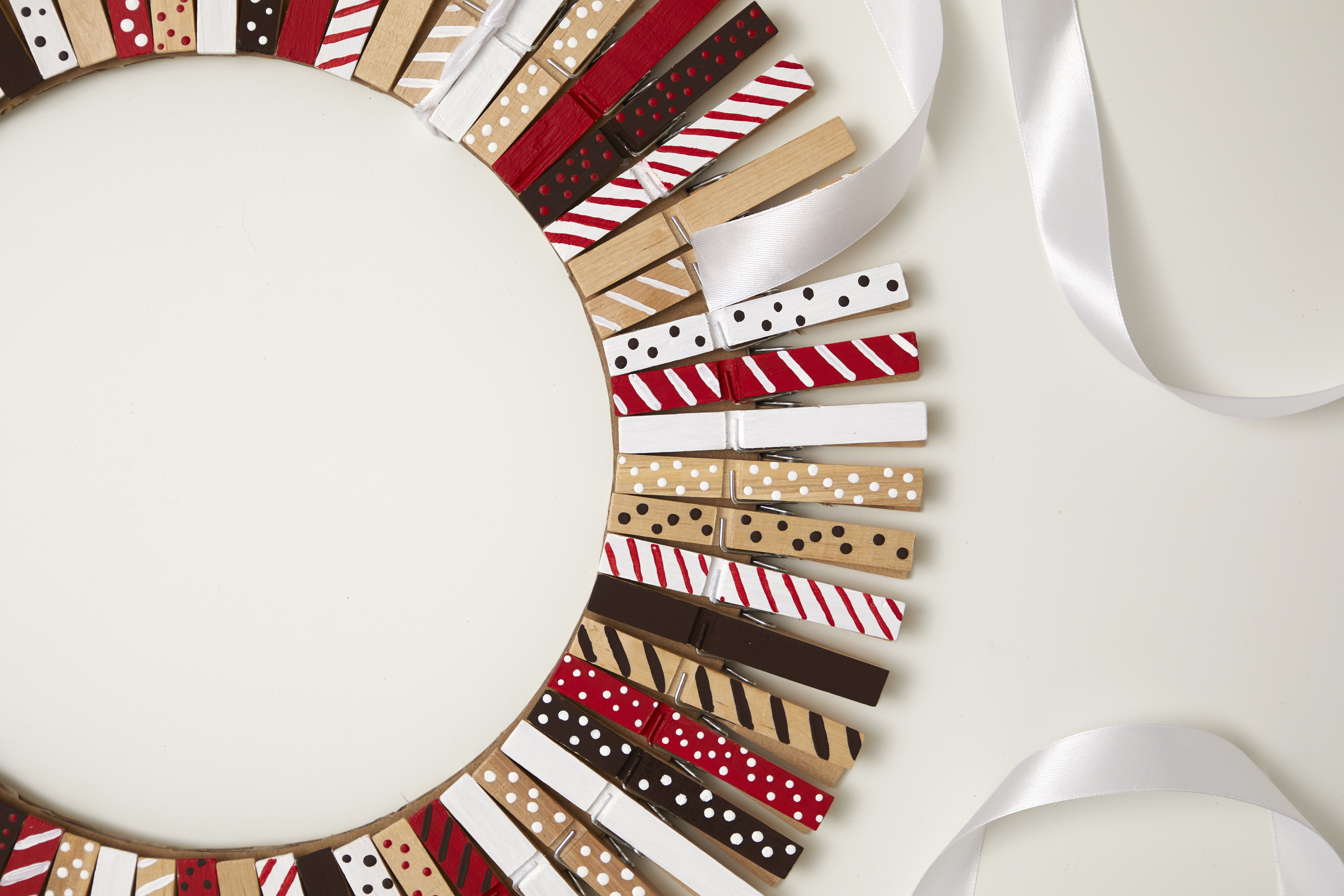 - Ajouter un ruban blanc et accrocher la couronne au mur ou sur une porte