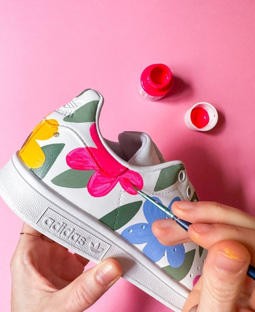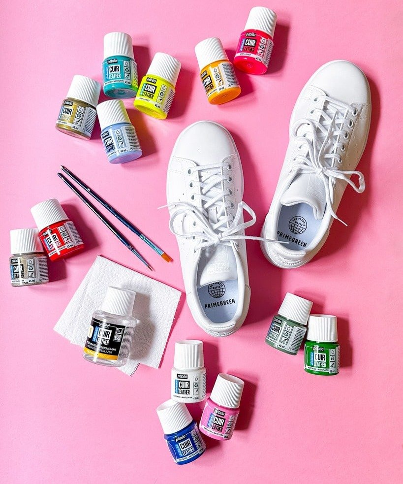 - Vous avez terminé votre customisation et vous pouvez marcher avec vos jolies sneakers DIY. N’hésitez pas à parcourir notre site pour plus d’idées de réalisations sur cuir.