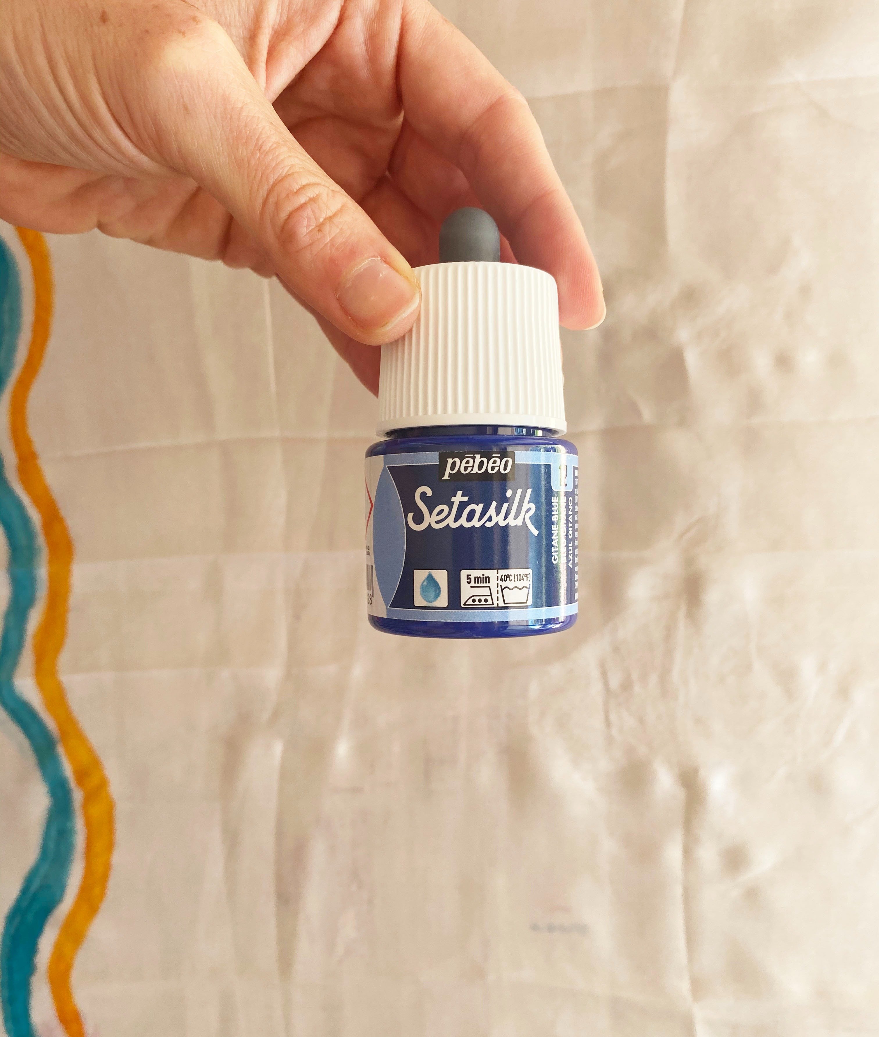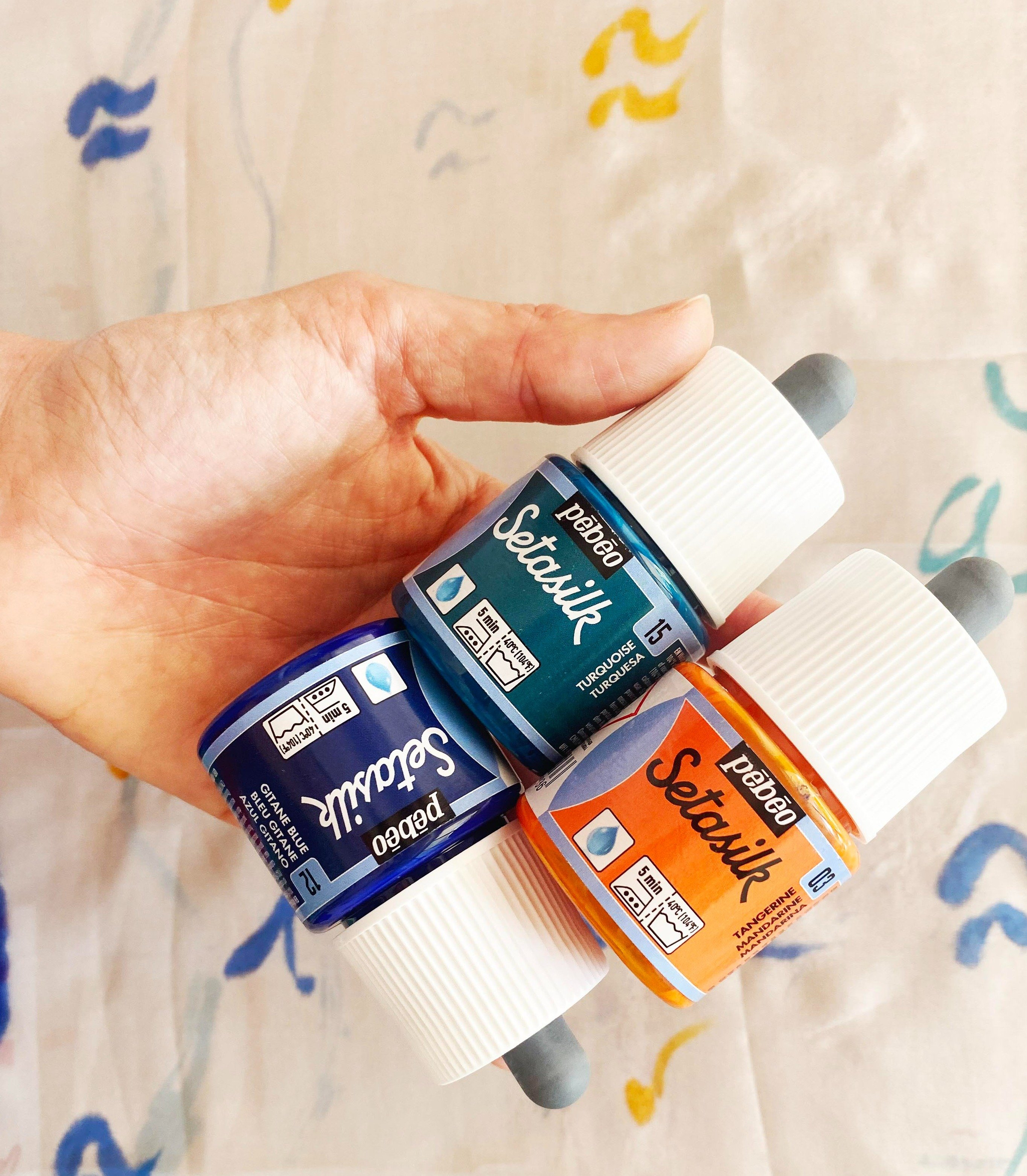 - peinture SETASILK : bleu gitane, turquoise, mandarine