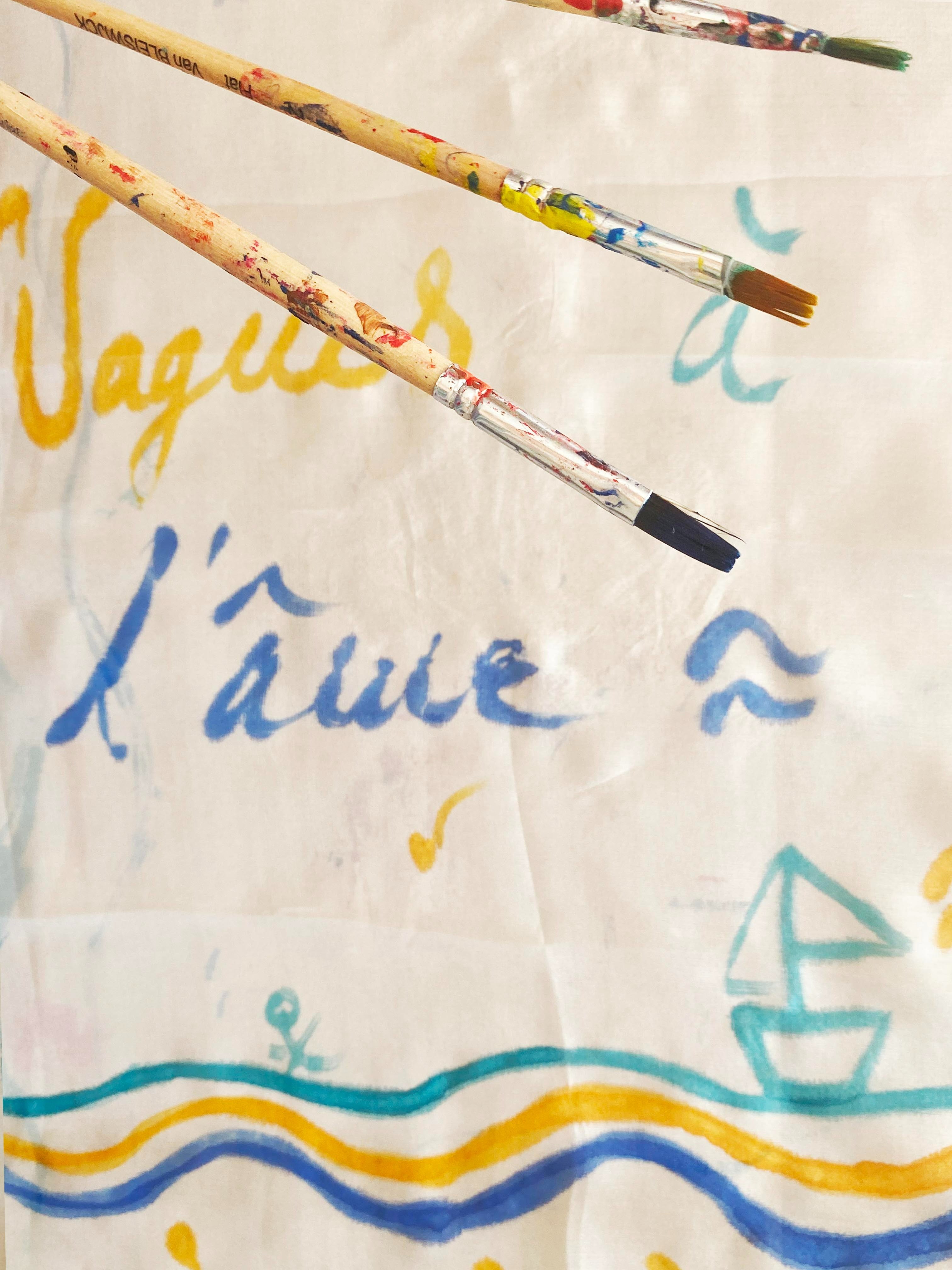 - Faire un petit croquis d’inspiration de ce que vous souhaitez réaliser sur le carré de soie.