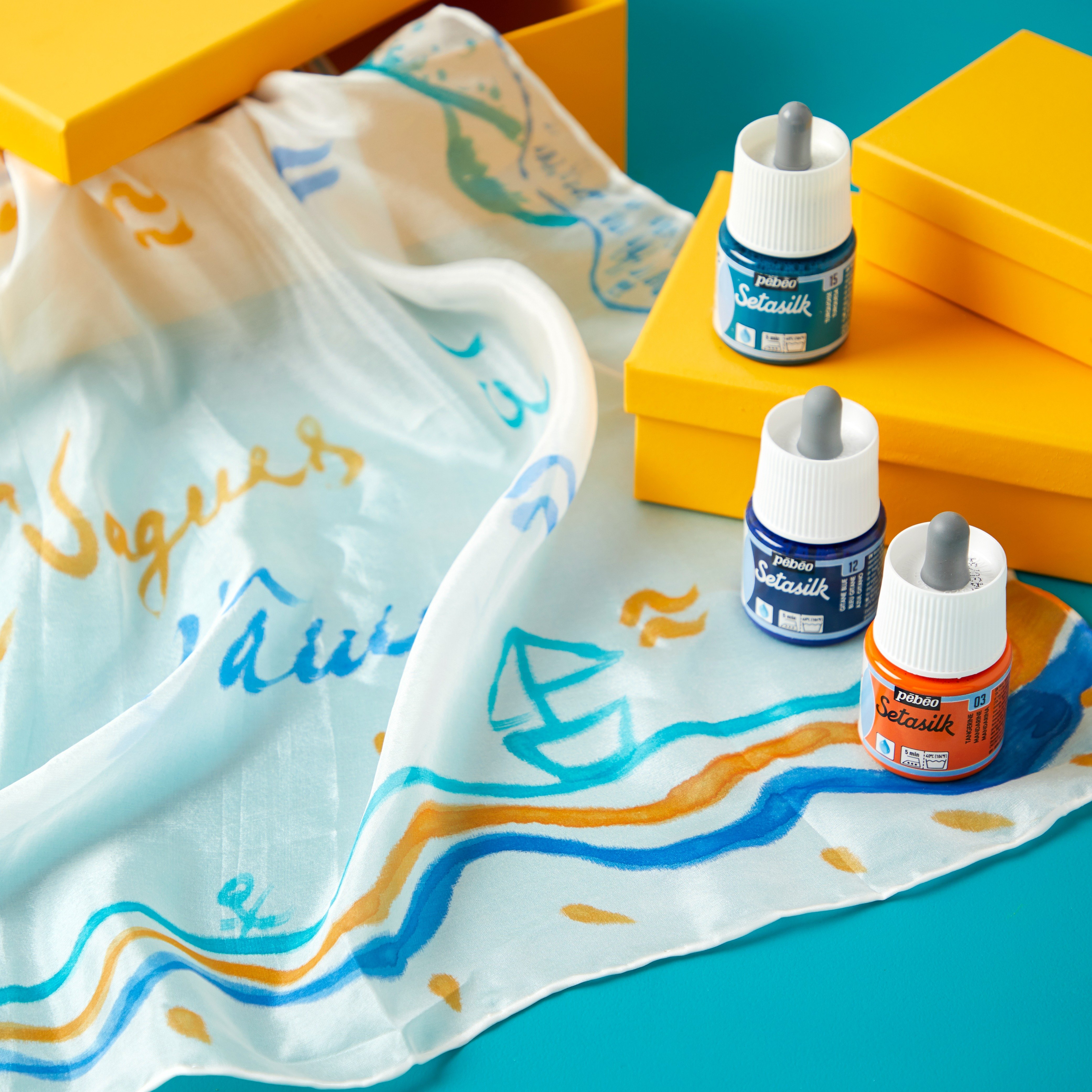 « Essayez-vous à la peinture sur soie Setasilk en réalisant un carré de soie unique ! »